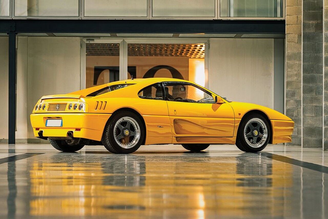 La zaga también se modificó para acoger unos pilotos redondeados, al igual que el parachoques delantero, cuyos focos cuadriculados también se pasaron a las formas más redondeadas. El cavallino rampante contrasta con el amarillo chillón y está flanqueado por una pareja de rejillas con una malla similar a la de un micrófono. Se incorporó una nueva cubierta transparente para el motor (Ferrari no lo haría hasta la llegada del 360 Módena), así como un nuevo juego de llantas oscuras de cinco radios.