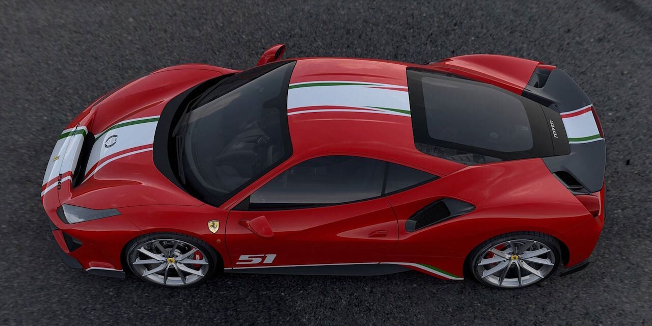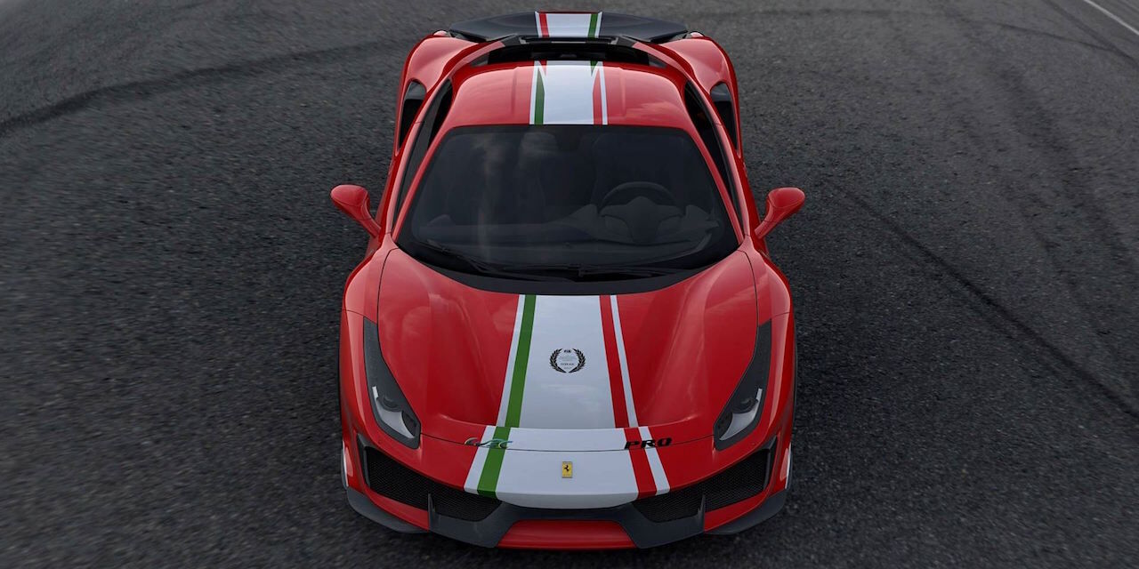 Este exclusivo vehículo se inspora en el coche 51 de la escudería AF Corse que compite en la categoría GTE (Grand Touring Endurance) del WEC (Mundial de Resistencia). A diferencia del 488 Pista «convencional» tiene una decoración específica, con una franja tricolore, con la bandera italiana, que cruza el coche por completo desde el capó hasta el spoiler trasero. En el centro de esta bandera se ha pintado una coroña de laurel recordando la victoria en el Campeonato del Mundo de Resistencia en 2017.