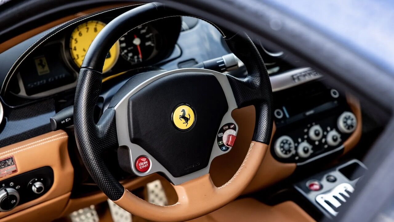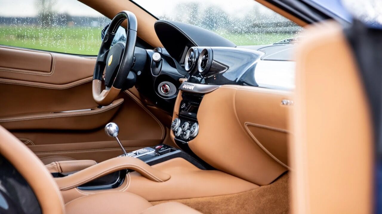 Aunque la noticia no solo es que uno de los diez Ferrari 599 GTB con cambio manual esté a la venta, también que es el único con un pasado español. Esta unidad salió de fábrica en marzo de 2008 con esa particular configuración con el exterior en el color Blu Mirabeau y el interior con tapicería de cuero Cuoio con alfombrillas a juego. Además de tener la peculiaridad del cambio manual de seis velocidades, también montaba unos asientos Daytona, tablero de instrumentos y un volante a juego. Incluso las llantas fueron pintadas en un tono especial.
