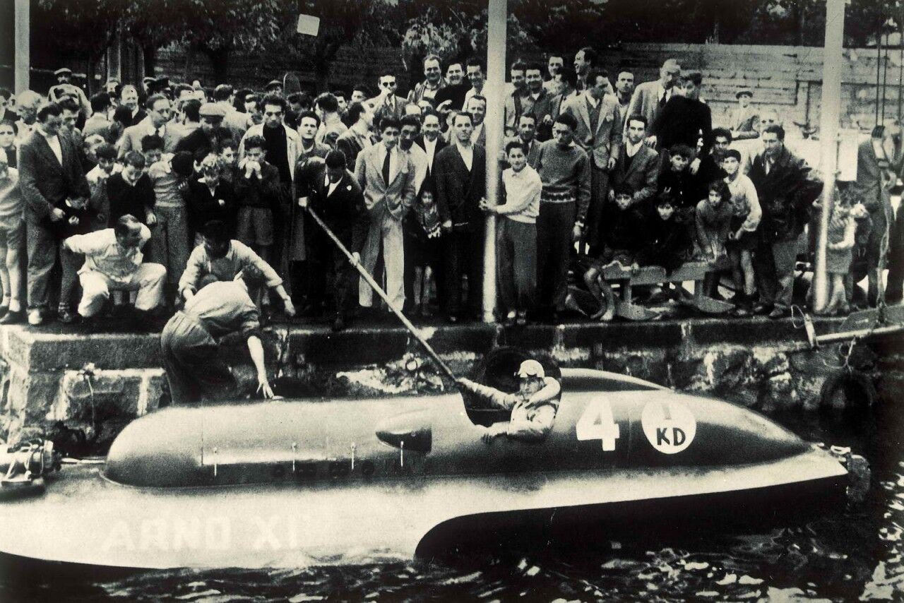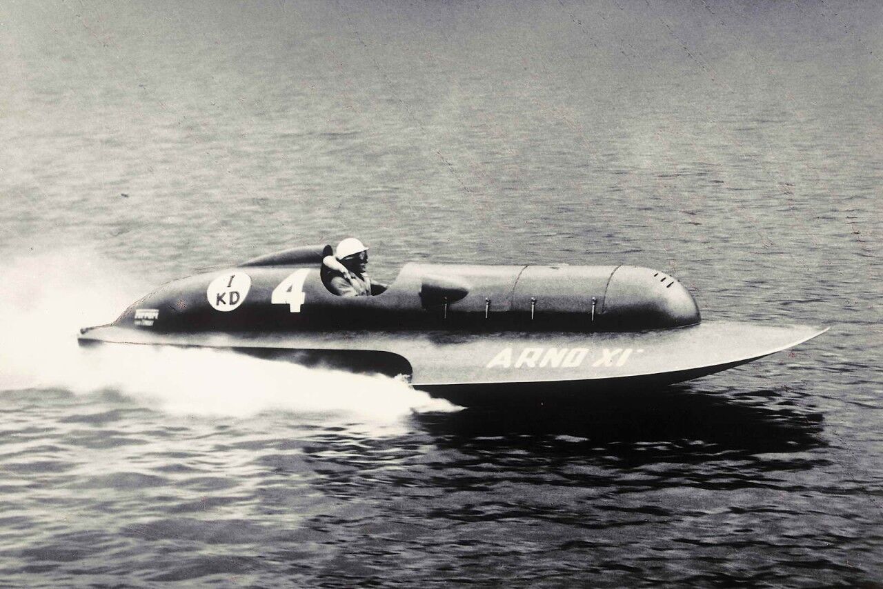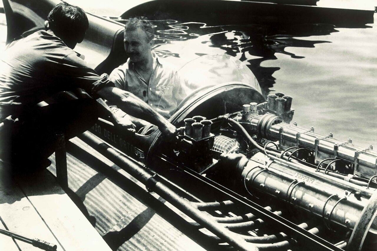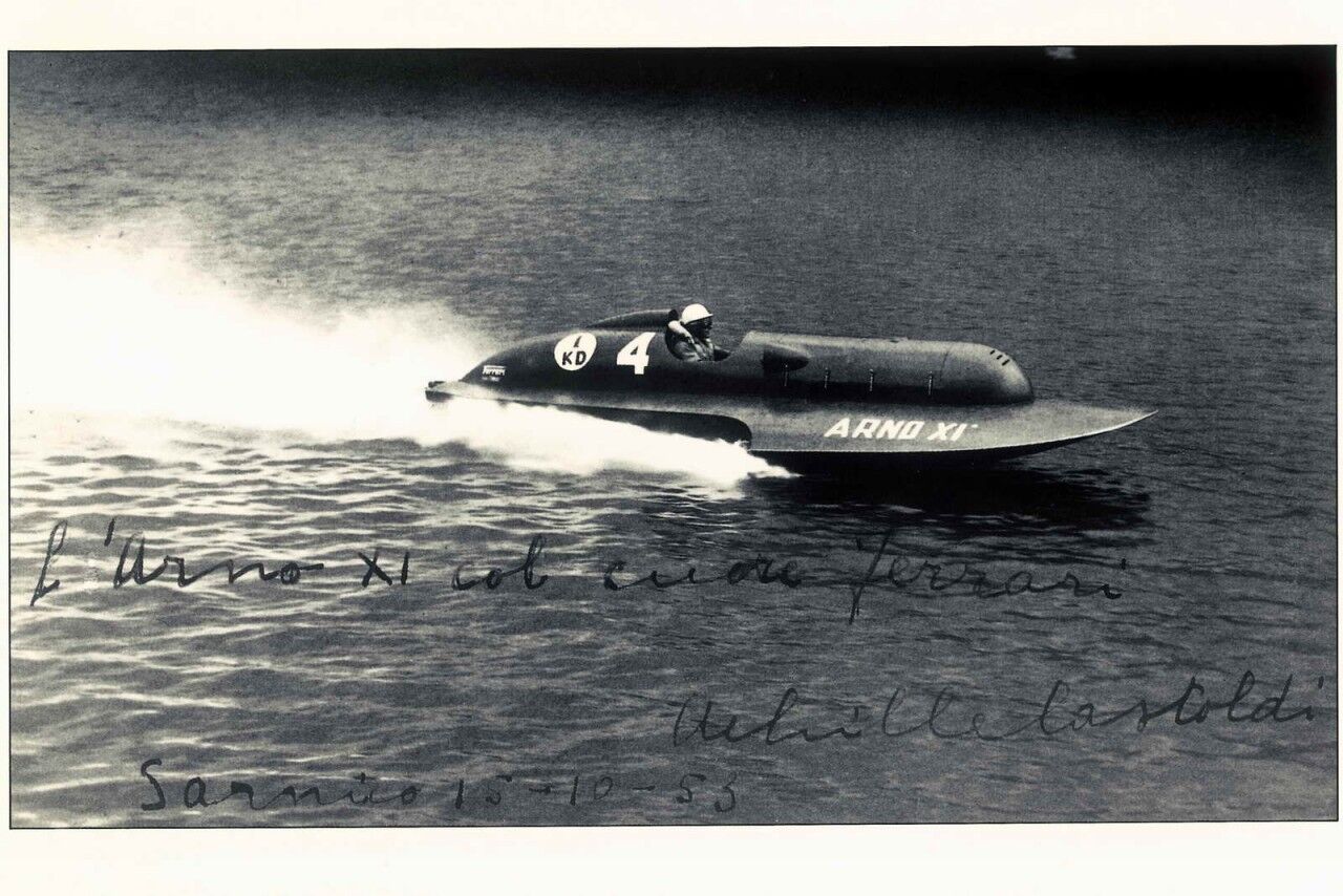 Achille Castoldi era el piloto número uno de Italia a la hora de ponerse tras el volante de una lancha rápida. También era ingeniero, y la velocidad la tenía en todo su torrente sanguíneo. Logró conseguir algún que otro récord sobre el agua, uno de ellos con este particular barco firmado por la casa del cavallino rampante: el Ferrari Arno XI.