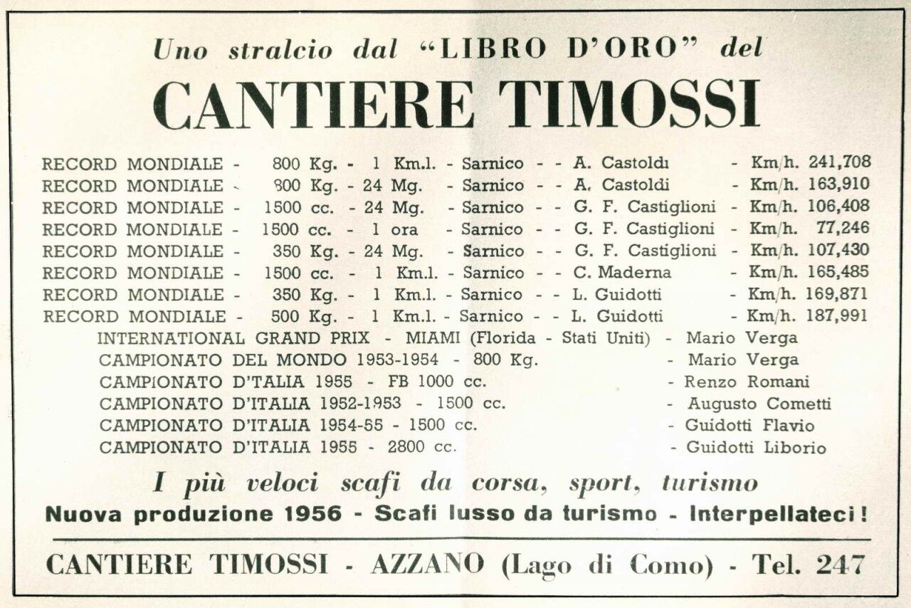 Al año siguiente a estos triunfos, Castoldi sobrevivió a una grave falla de motor en una lancha de 1.700 kg con motor de avión y su rival directo, Mario Verga, falleció. Estos hechos obligaron a Castoldi a retirarse de la competición y su Arno XI se almacenó hasta que fue comprado en 1958 por Nando Dell’Orto. Este ingeniero y “gentleman driver” compitió con el bólido rojo en diversas competiciones de agua.