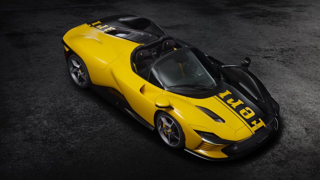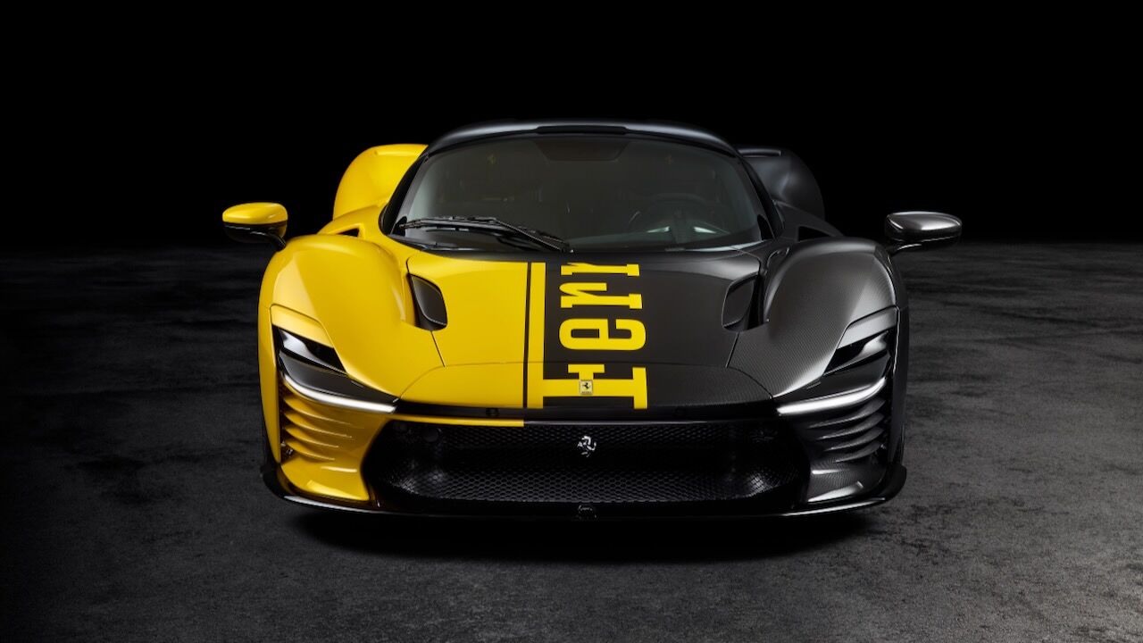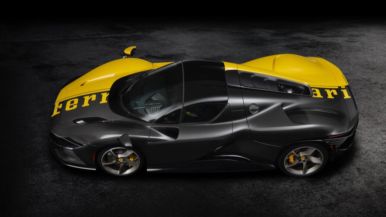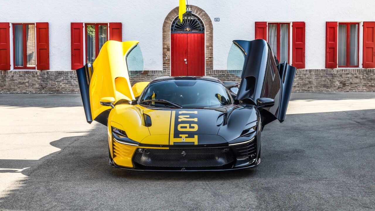 El motivo que explica el salto de precio de 2 a 26 millones de dólares está en su configuración absolutamente irrepetible. La carrocería luce un acabado bitono amarillo y negro, con el logotipo de Ferrari recorriendo sus líneas de forma inédita. El interior, por su parte, se viste con tejidos confeccionados a partir de materiales reciclados, mientras que el salpicadero y la columna de dirección están elaborados con la misma fibra de carbono del monoplaza de Fórmula 1 SF-25 de la Scuderia.