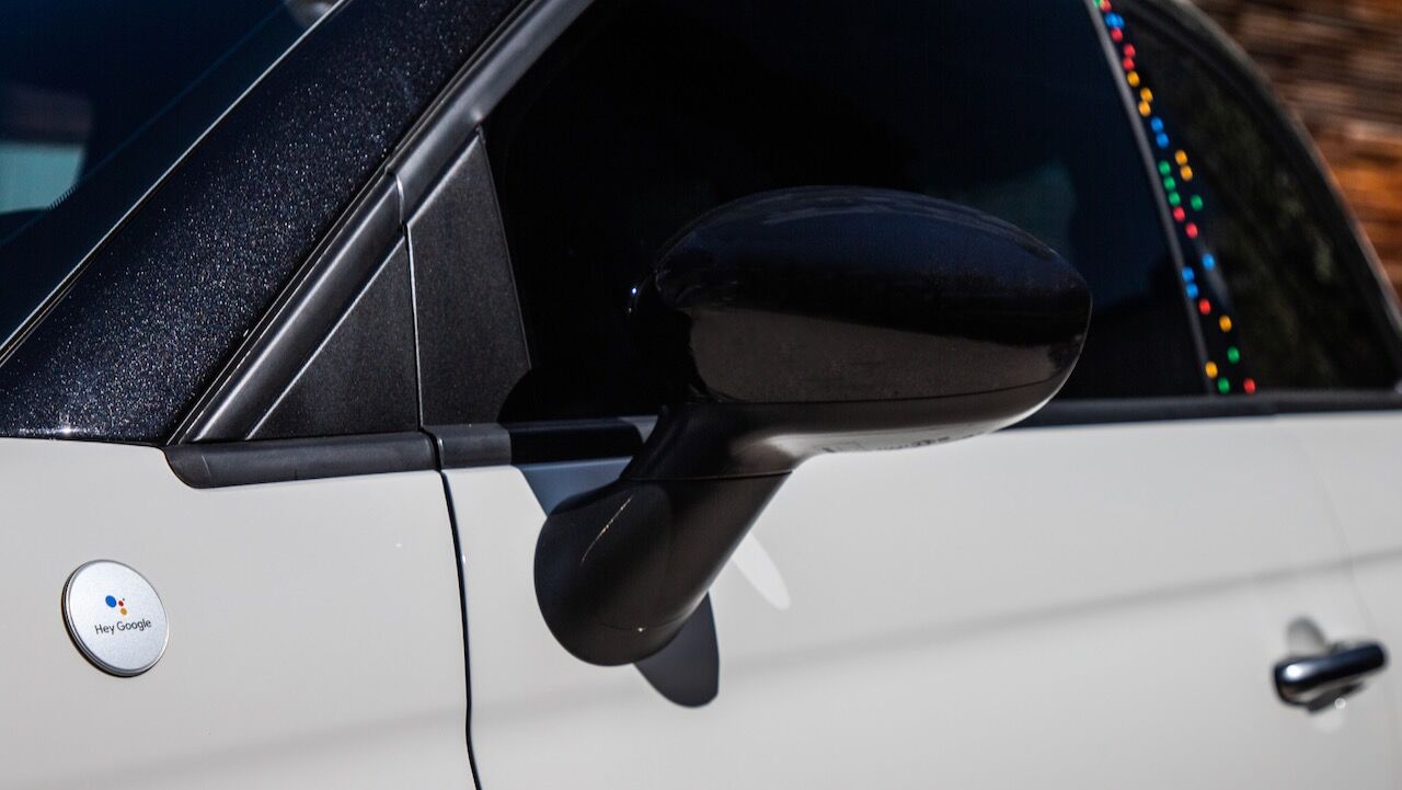 La familia de Fiat 500 Hey Google viene con una serie de añadidos para distinguirse del resto de versiones. En el exterior, la carrocería se viste de blanco, con el techo y los retrovisores en negro haciendo contraste. El logotipo de la edición aparece en los pasos de rueda delanteros, mientras que en los pilares B hay unos llamativos adornos con los colores de Google que son lo más característico del modelo.