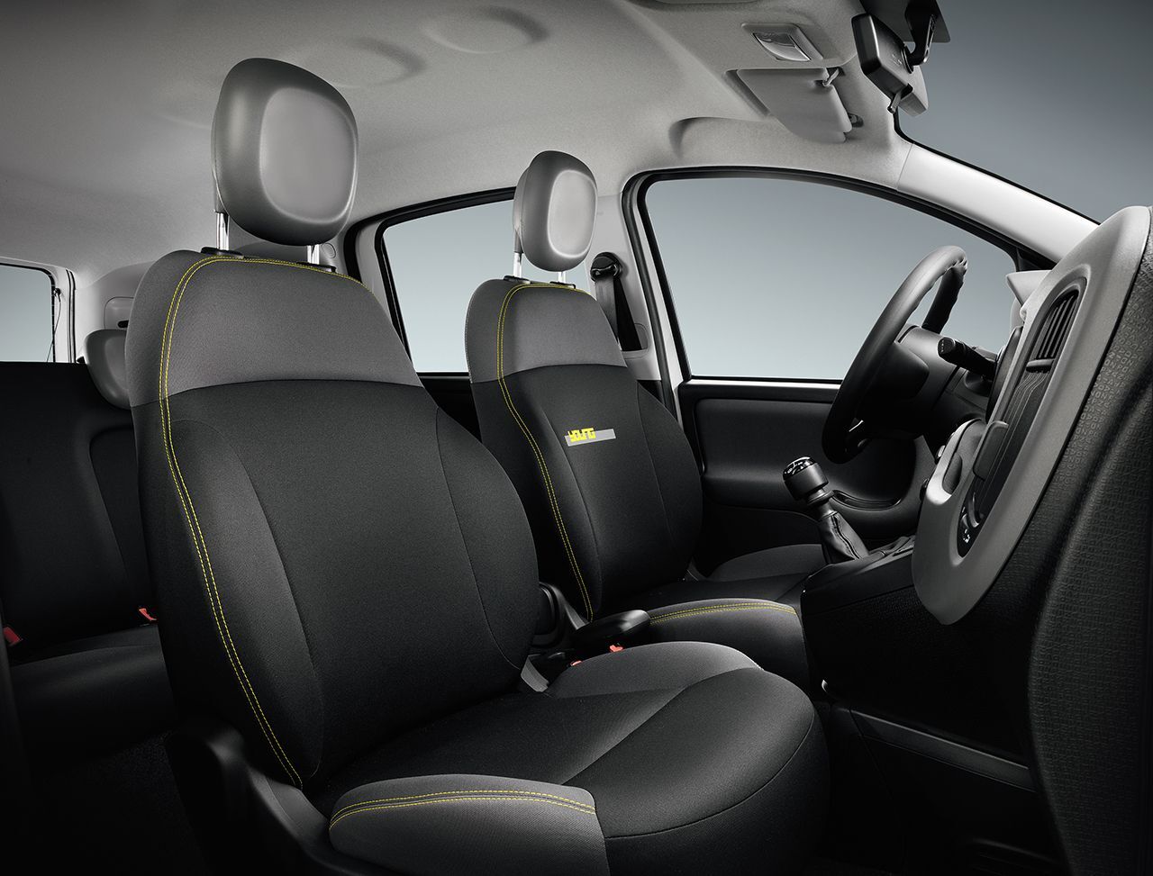 Por fuera, será sencillo reconocer al Fiat Panda Young por sus llantas de acero de 14 gris mate en color gris mate con el embellecedor central amarillo. Los retrovisores también son en ese mismo color gris mate y cuenta con adhesivos en las puertas y del portón del maletero con la inscripción “Young”. La carrocería está disponible en tres colores sólidos: (blanco, rojo y negro) y en dos metalizados: Verde Claro y Gris Argento.