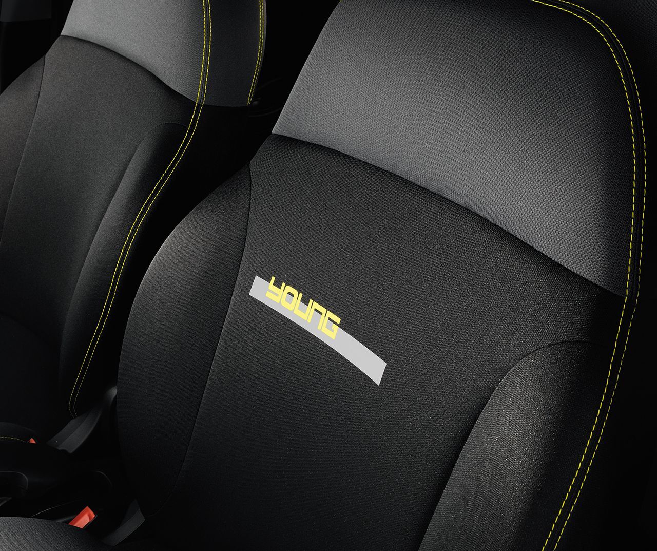 En su interior, la nueva versión Young añade al acabado Pop el aire acondicionado, tapicería específica gris/negro con doble costura amarilla en asientos delanteros y traseros y logo en el respaldo del asiento conductor.