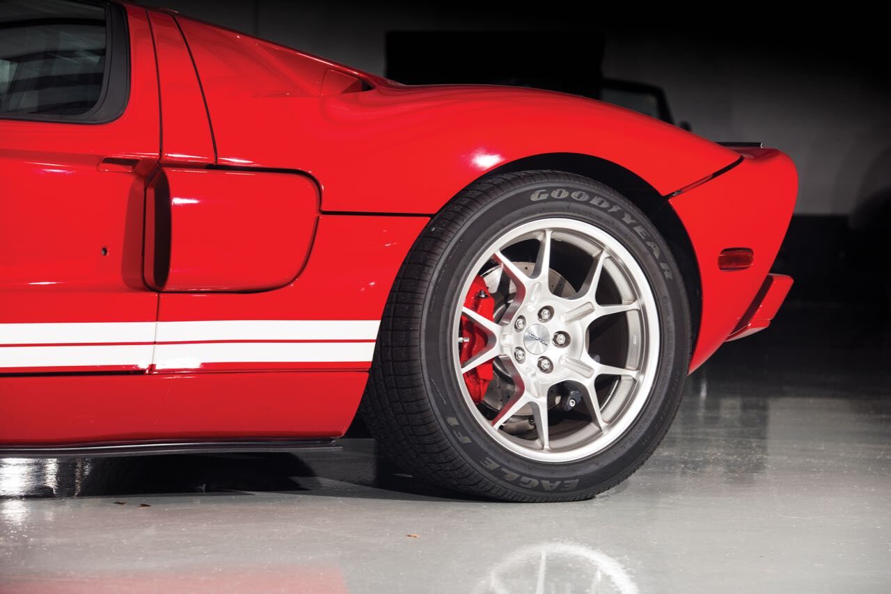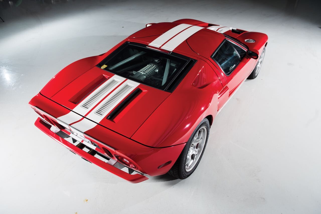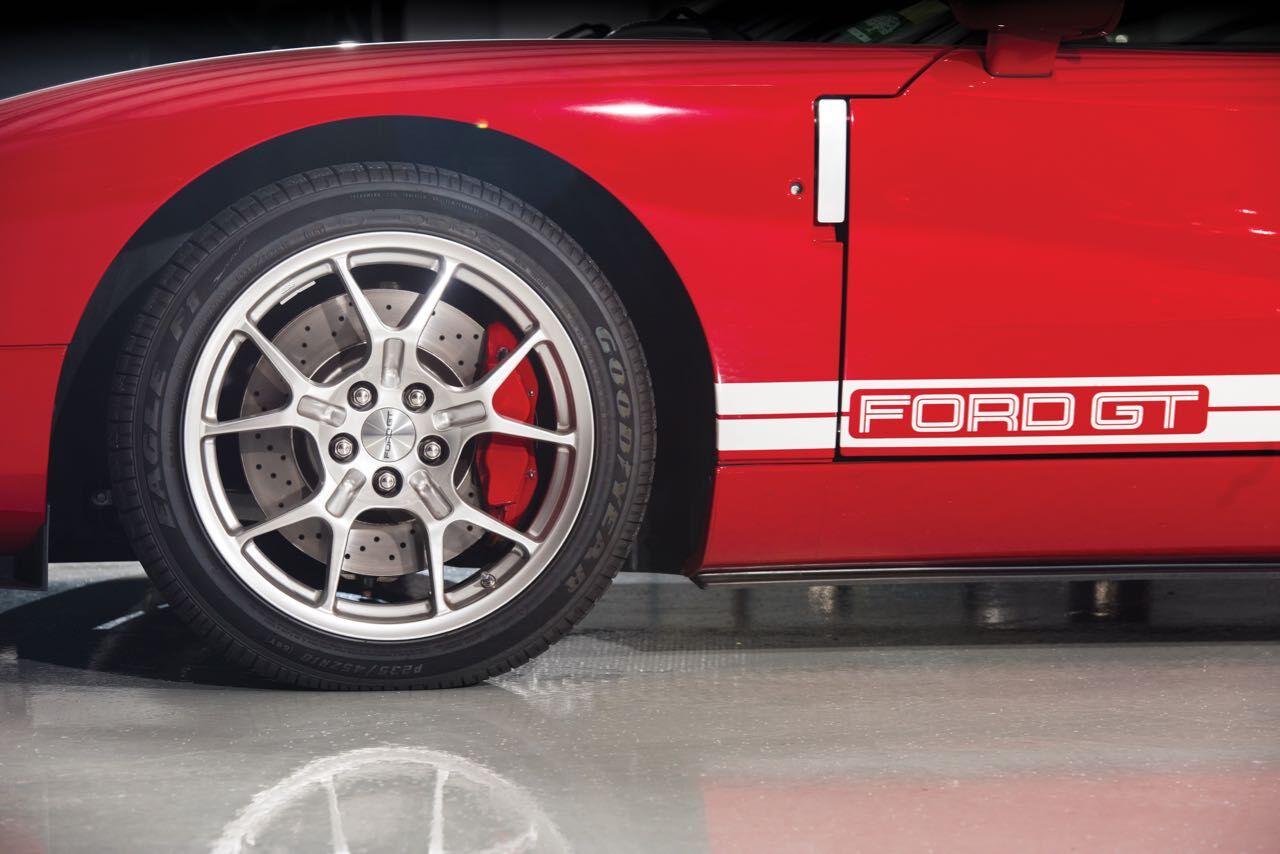 Para celebrar el centenario de Ford se presentó el sucesor del Ford GT40, el Ford GT 2004. Compartía un diseño casi calcado al del modelo original (algo más largo, ancho y alto). Eso sí, bajo esa carrocería de aspecto retro se escondía un tren propulsor completamente moderno, un motor V8 de estructura modular fabricado parcialmente en aluminio de 5.4 litros con 32 válculas, un nuevo árbol de levas que entregaba 558 CV a 6.500 rpm y un par máximo de 678 Nm a 4.750 rpm. Frenos de disco hidráulicos Brembo de cuatro pistones con rotores perforados y ventilados se aseguraban que el vehículo se detuviese a tiempo.