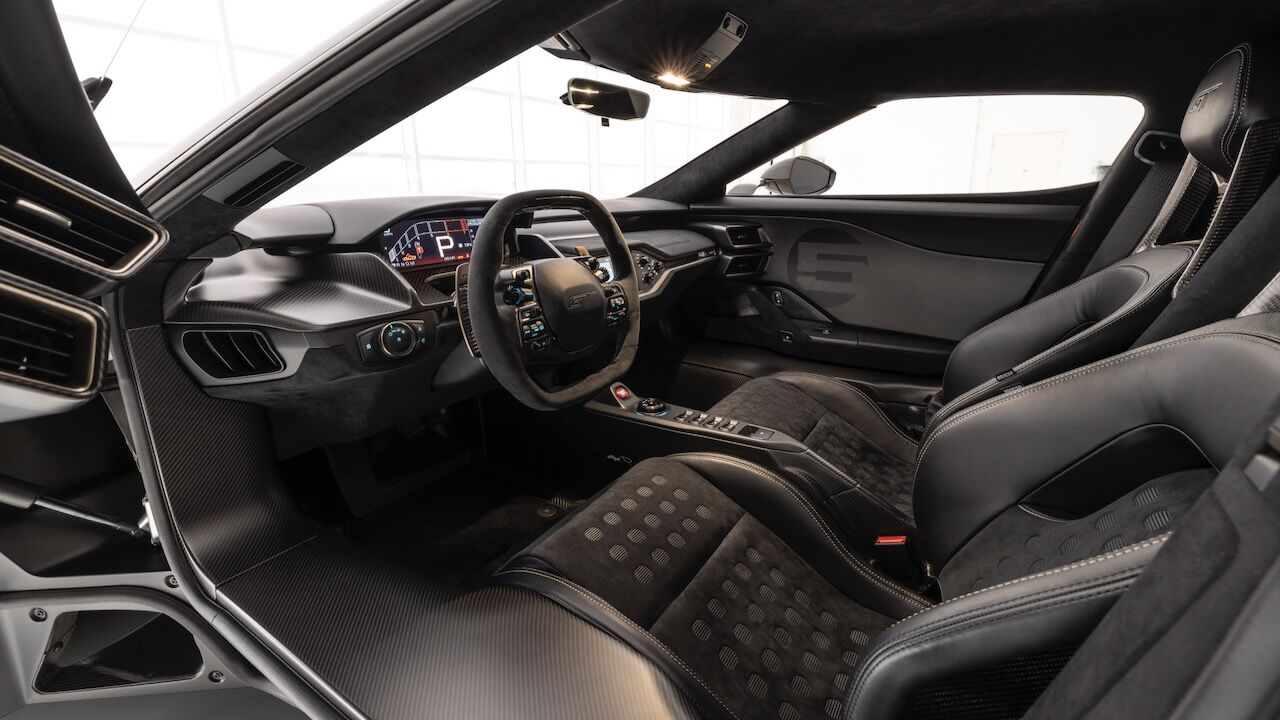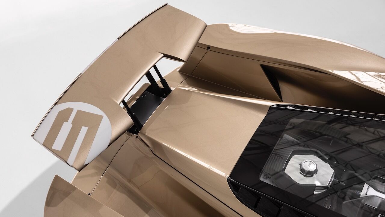 En el exterior también destaca la fibra de carbono brillante, que está expuesta en zonas como el splitter delantero, los umbrales laterales, la rejilla del motor o el difusor trasero. También son de este material las llantas de 20 pulgadas. En el habitáculo van a juego los marcos de las puertas o la consola central. Aunque también llama la atención los asientos de fibra de carbono con la tapicería Ebony Alcántara con costuras en dorado y el logotipo GT grabado en relieve. El salpicadero y el techo también van este material, mientras que hay más detalles en dorado para ir a juego con el exterior, como es el caso de las levas del volante.