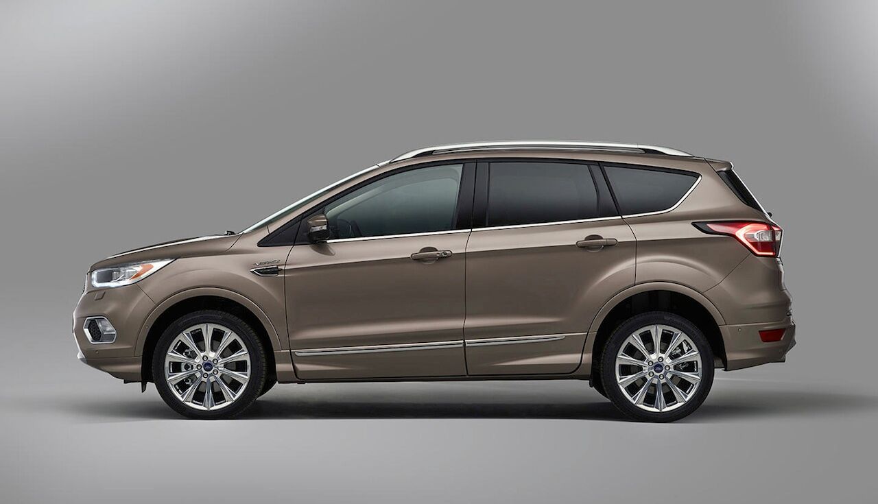 Basado en el Ford Kuga 2016, el nuevo Ford Kuga Vignale se presenta en un nuevo color exterior perla exclusivo Milano Grigio con tonos metálicos rosados, con acabados brillantes oscuros en placas antiarañazos de las puertas, apliques y en el acabado del maletero. El morro tiene la parrilla hexagonal marca de la casa Vignale.