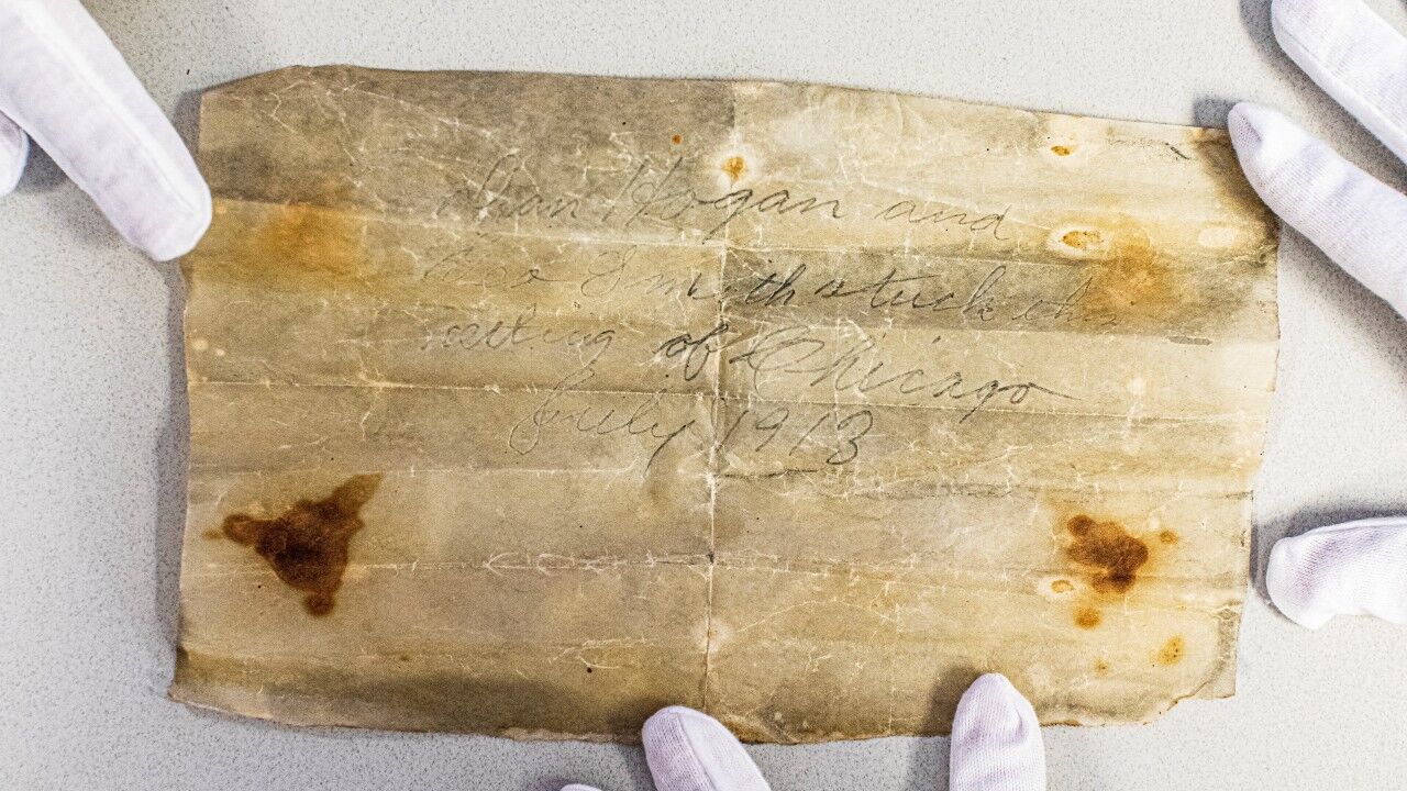 “Los artículos que se han encontrado muestran el cuidado que cada uno de los trabajadores de la construcción está tomando”, mencionó Rich Bardelli, director de la construcción de la firma del óvalo azul para el proyecto de desarrollo de Michigan Central. “Lo vieron y sabían que era importante, así que nos lo trajeron. Mi reacción fue esperar a abrirlo y asegurarme de que lo hacemos bien”. El papel que contiene el mensaje será cuidado con delicadeza por los historiadores de Ford en su espacio con temperatura controlada.