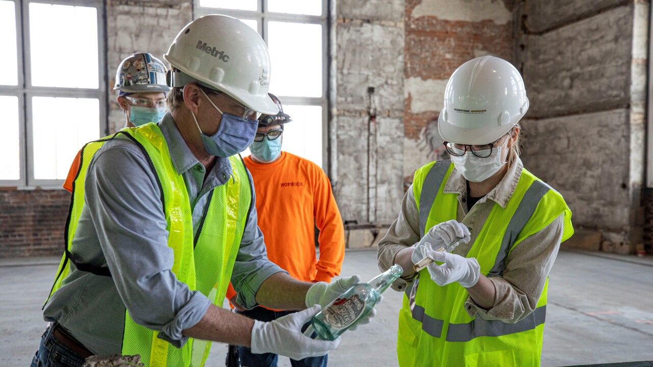 David Kampo, superintendente de proyectos de Christman-Brinker, es la persona al cargo del equipo de construcción que lidera el proyecto de restauración. Más tarde en esa noche, también encontraron un botón del mono que se cree que se le cayó a un trabajador durante la construcción original. También se halló dentro de la pared. A principios de la década de 1900, cuando se construyó la estación, los monos “Detroit Special” de Finck eran sinónimo de prendas de mezclilla (tejido vaquero) de calidad para los obreros.