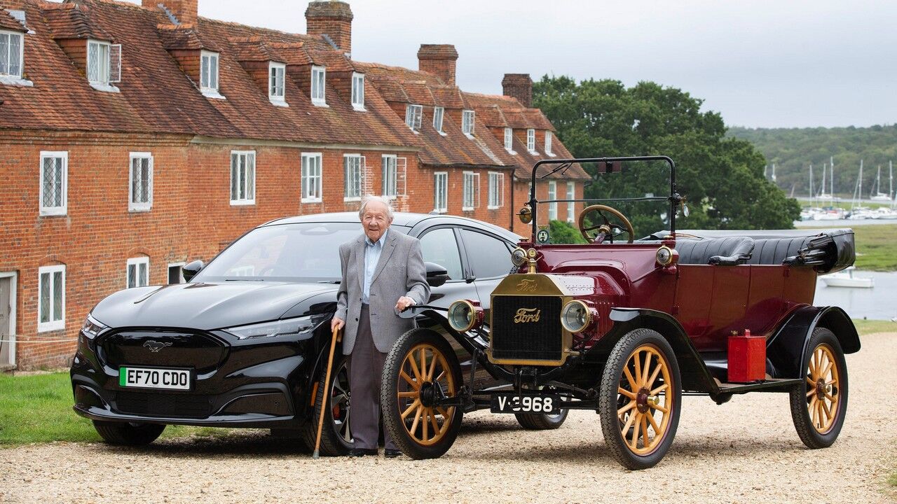 De hecho, la familia posee más de 140 chasis de vehículos comerciales de la compañía para su negocio de autocares. Ford, por tanto, decidió darle una oportunidad a Baggott en uno de sus coches más modernos, concretamente uno que definirá el futuro de la compañía, el Mustang Mach-E totalmente eléctrico. Porque el anciano, a pesar de su edad, todavía conduce todos los días. Por supuesto, no se puedo resistir a la invitación, que también incluí aun paseo a bordo de un Model T de 1915.