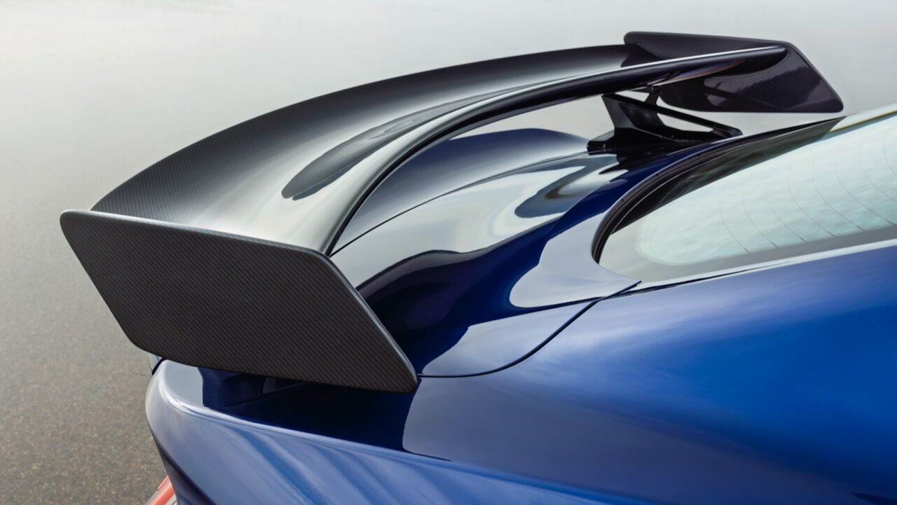 Han sustituido componentes de acero por piezas forjadas y añadido una barra de torretas de magnesio para que la dirección te transmita al máximo lo que ocurre en el asfalto. La aerodinámica ha sido esculpida en el túnel de viento y validada en circuitos como Sebring y Virginia International Raceway, codo con codo con el equipo de carreras del GT3. El resultado es fascinante: el nuevo capó de aluminio tiene una ventilación que, al retirar una bandeja, multiplica por 2,5 la carga aerodinámica frontal. Detrás, un alerón de fibra de carbono genera casi 300 kg de carga a 290 km/h.