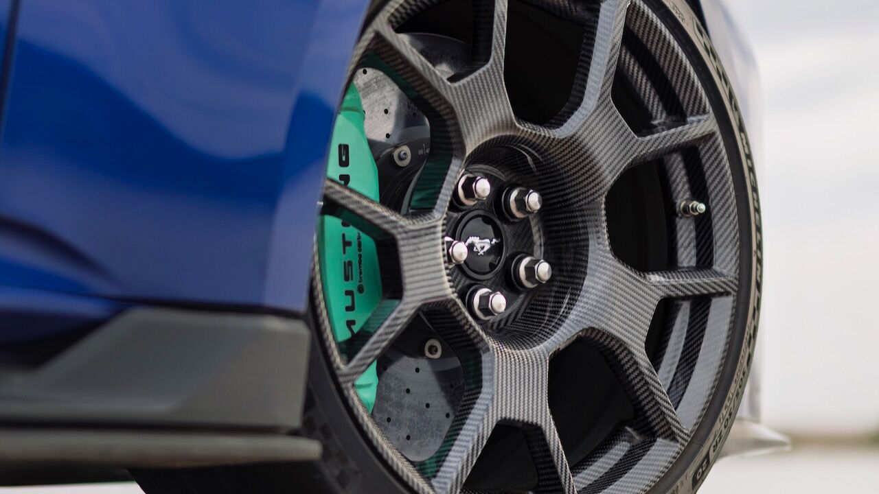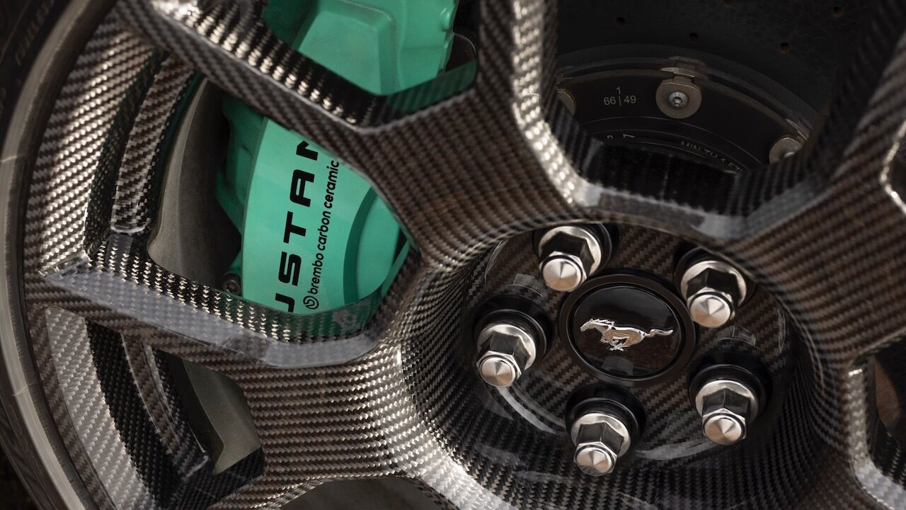 Lo primero que llama la atención no es solo su aspecto intimidante, sino lo que esconde bajo el capó. Ford ha optado por el motor V8 sobrealimentado de 5.2 litros (SC de «SuperCharged) que viene del GTD y que quedará cerca de sus 815 CV de potencia. Sin embargo, este coche no va solo de potencia desbocada en línea recta, también han pensado en la aerodinámica y en el peso. El paquete Track Pack es la joya de la corona, incorporando frenos carbocerámicos Brembo y llantas de fibra de carbono que, juntos, eliminan casi 70 kg de masa no suspendida.