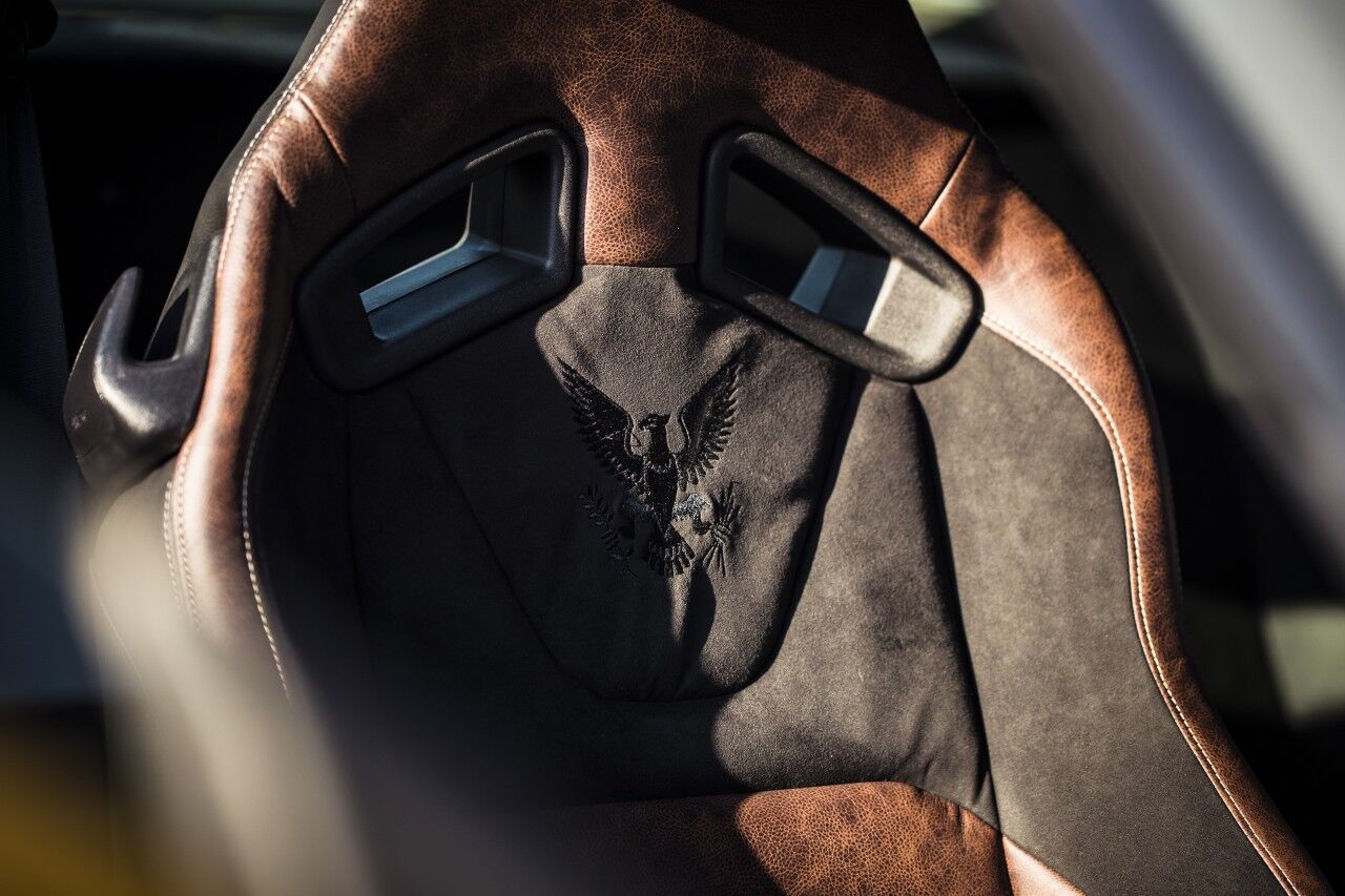 Pero sin duda lo que más destaca es su motor V8 de 5.0 litros, que gracias a un kit de sobrealimentación consigue una potencia de 700 CV y 827 Nm de par. Va ligado a una caja de cambios manual Tremec de seis velocidades y toda la potencia pasa directamente al eje trasero. Para mejorar su comportamiento también se ha instalado el paquete de suspensión RTR Tactical Performance, que ofrece una mayor rigidez, además de unas llantas forjadas RTR Aero 7 de 20 pulgadas con neumáticos Nitto NT555.
