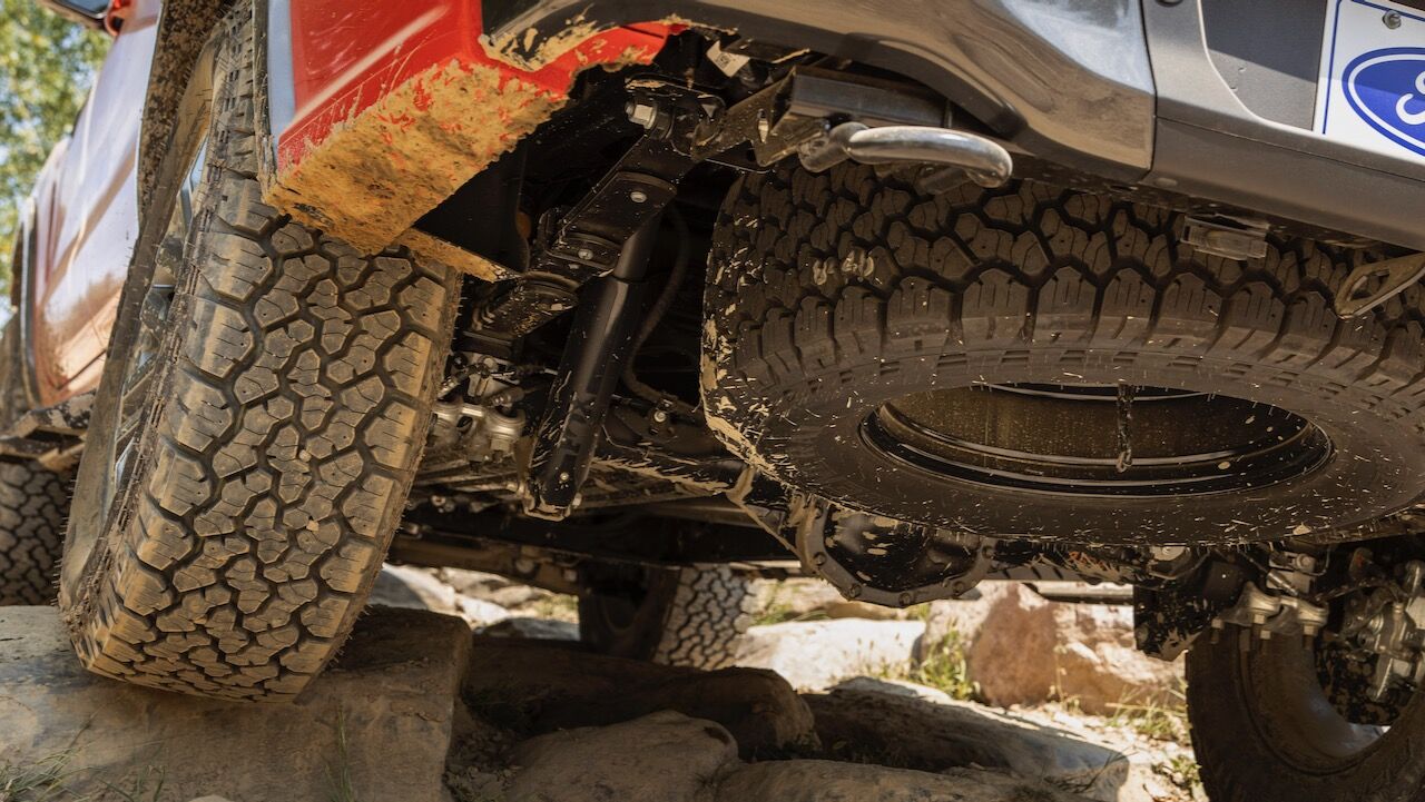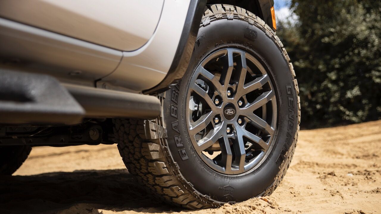 Además, suma unos neumáticos todoterreno Continental General Grabber de 32 pulgadas de lo más interesantes. Con el conjunto de suspensión y neumáticos no solo aumenta su distancia libre al suelo, sino también sus cotas para sortear obstáculos. El Ford Ranger Tremor tiene un ángulo de entrada de 30,9º, un ángulo ventral de 24,2º y un ángulo de salida de 25,5º; superando al modelo de serie en todos los valores.