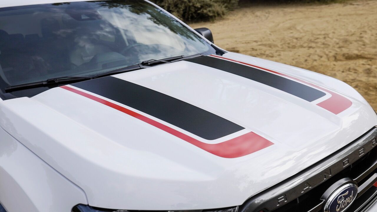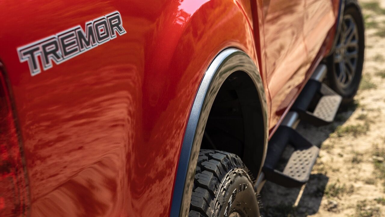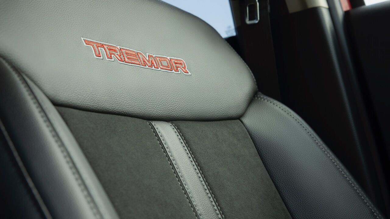 El Ford Ranger Tremor también cuenta con una decoración diferenciada del resto de la gama. La carrocería está adornada con algunos gráficos, mientras que hay algunos detalles en negro, protecciones adicionales y un interior a juego con el exterior. De momento, esta versión solamente estará disponible en Estados Unidos y formará parte de un paquete que se podrá sumar a los acabados XLT y Lariat de doble cabina.