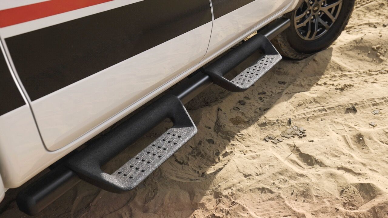 Para empezar, hay que mencionar que este modelo cuenta con una mayor distancia libre al suelo gracias a una suspensión modificada que cuenta con amortiguadores monotubo del especialista Fox. Tienen un tarado específico para mejorar el comportamiento en terrenos difíciles y también se ha reducido la rigidez de la barra estabilizadora para mejorar la comodidad fuera del asfalto. El recorrido de la suspensión delantera aumenta en 16,5 centímetros y en el eje trasero se suman 20,5 centímetros adicionales.