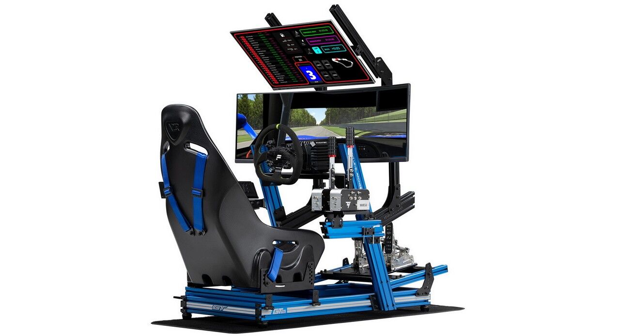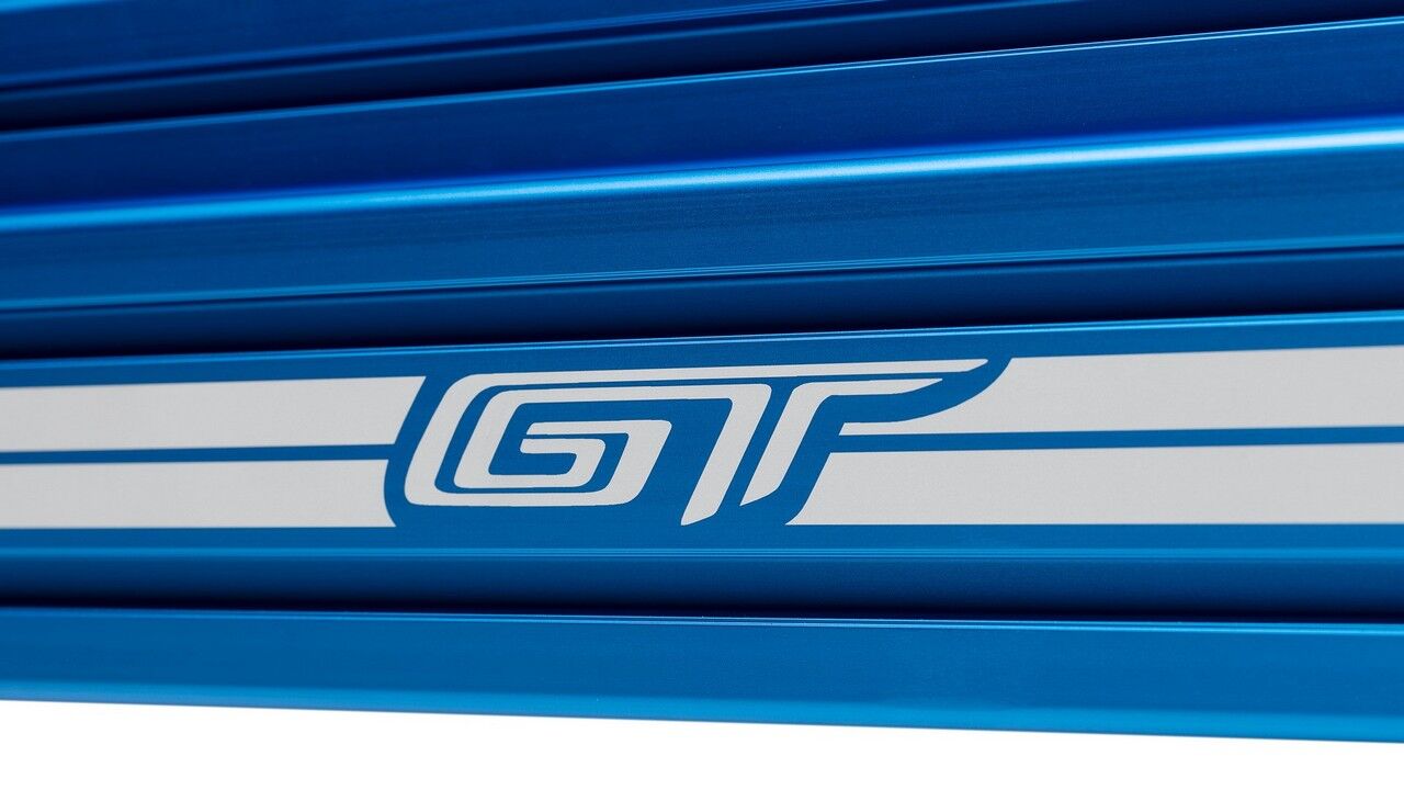 Desafortunadamente, no puedes comprar ninguno de estos como un conjunto, y los precios no se anunciarán hasta finales de este año. Pero estamos seguros de que es más accesible que un GT. El fabricante de plataformas de simulación ha creado un marco de acero al carbono anodizado en azul, el cual se parece mucho al color del deportivo estadounidense cuando se presentó en 2015. Además de eso, por supuesto, están presentes los emblemas de “Ford” y “GT” grabados a láser.