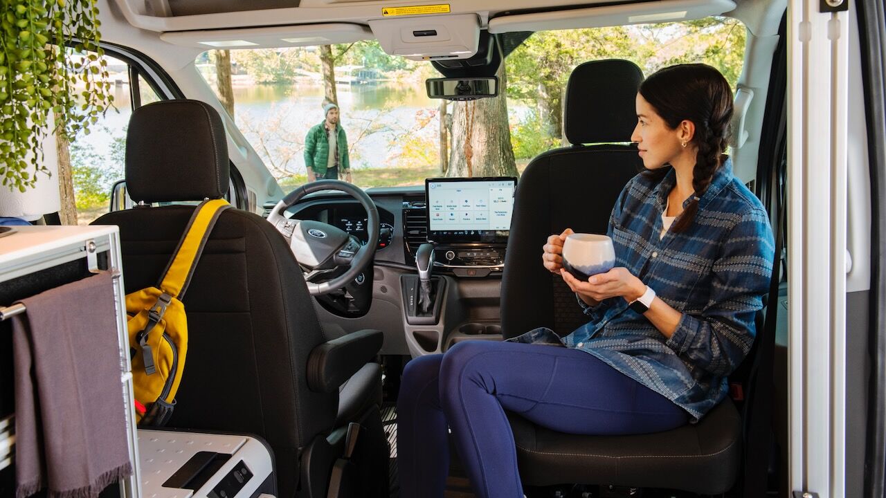 Entre el equipamiento del Ford Transit Trail aparece toda la tecnología con la que puede contar el modelo, incluyendo el sistema multimedia SYNC 4 con pantalla táctil de 12 pulgadas y cámara digital de alta resolución. Aunque lo más interesante es que el interior de esta camper está preparado para ser un hogar. En su espacio de 13,80 metros cúbicos pueden adaptarse camas, estanterías y todo tipo de muebles para cubrir las necesidades del usuario. Opcionalmente se ofrecen cristales tintas y un ventilador de techo. Además, los asientos delanteros son giratorios para formar un espacio más aprovechable.