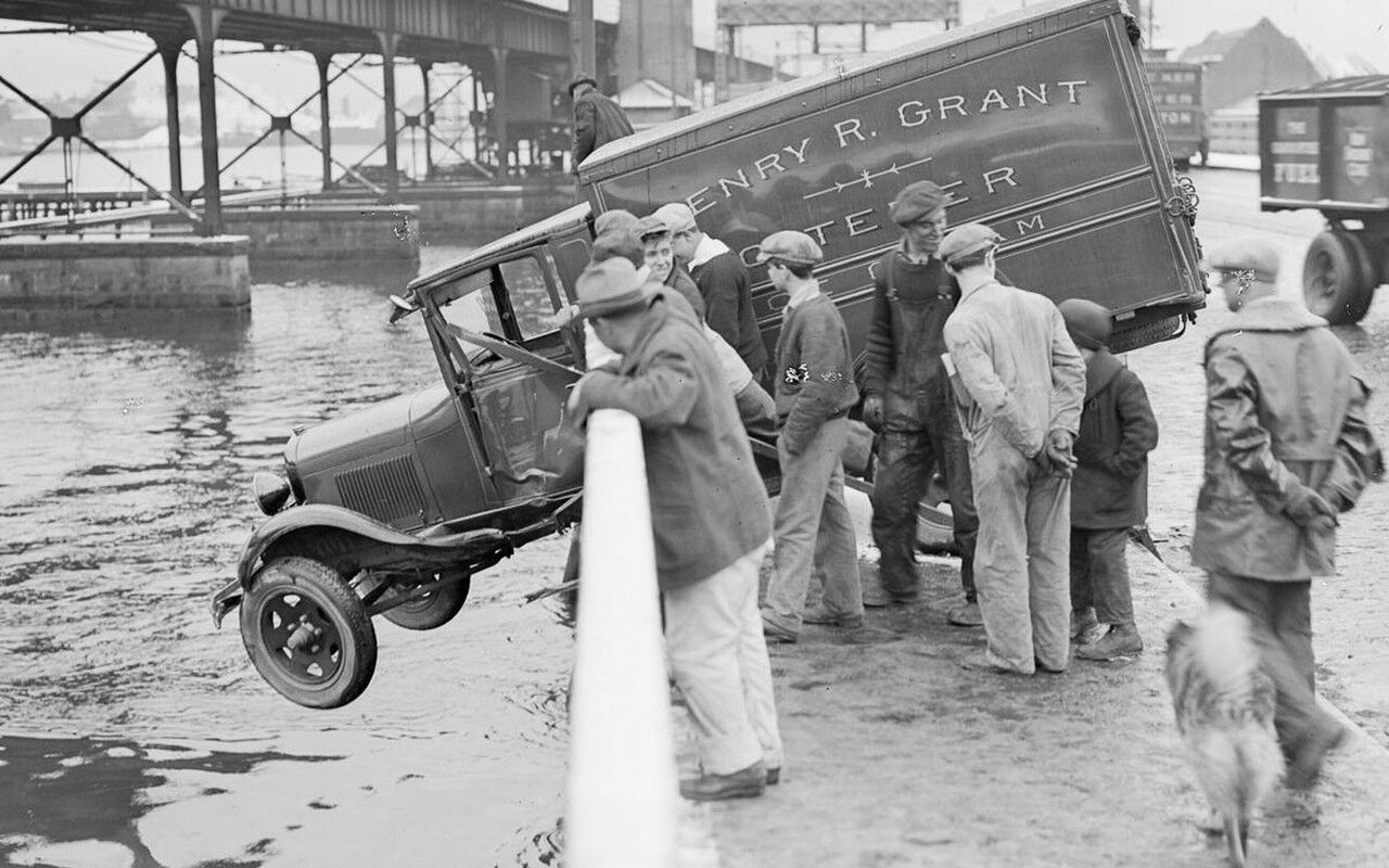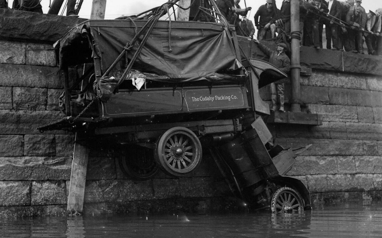 Jones fotografía cientos de escenas accidentadas de choques contra mobiliario urbano, caídas al agua, destrucción de vallas, volcados de camiones, etc. Además, tomó fotografías de la extracción del vehículo del agua, muchas veces con un estilo bizarro y cómico debido a la situación del momento, extrañas circustancias deben ocurrir para que el coche quede haciendo el pino o dentro de unas escaleras. En algunas de las imágenes se pueden observar a los espontáneos espectadores que observan interesados la extracción de los coches destrozados o inundados.