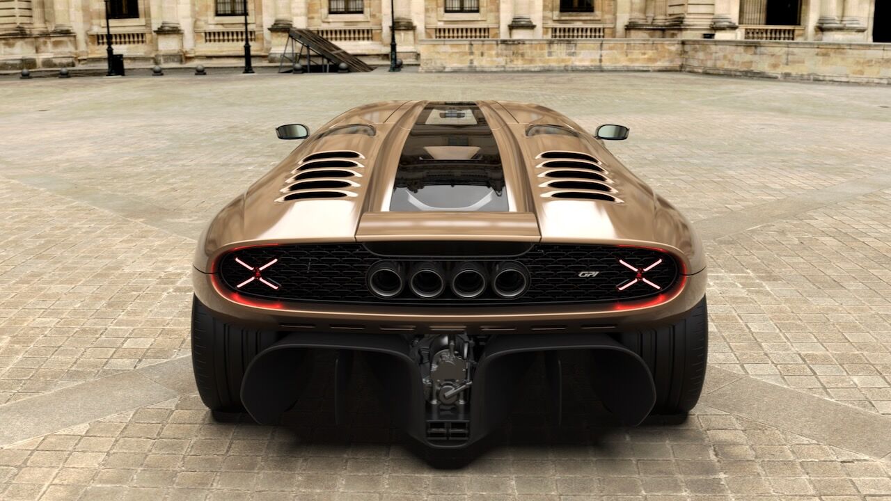 El GP1 ha sido diseñado desde una hoja en blanco por Ángel Guerra, exdiseñador de Bugatti y Rimac. Su silueta bebe de los grandes iconos de la historia (Lancia Stratos Zero, Lamborghini Countach y otras creaciones de Marcello Gandini), pero reinterpretados con un lenguaje propio, moderno y atemporal. Las líneas superiores son pura escultura, mientras que la parte inferior responde a una lógica puramente aerodinámica, con uno de los difusores traseros más grandes jamás montados en un coche de carretera.