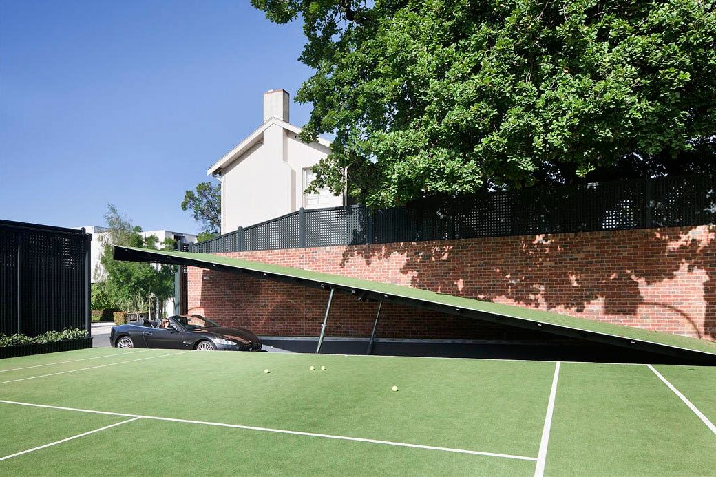 La firma de arquitectos Molecule ha diseñado este espectacular garaje bajo la mansión The Wayne Residence ubicada en Australia. El diseño está inspirado en la película de Batman El Caballero Oscuro (en la galería puedes ver un fotograma de la película para que puedas ver todas las similitudes). Las imágenes no dejan lugar a dudas en este sentido. Como bien puedes apreciar en la imagen inferior, el garaje cuenta con un elevador hidráulico, que tarda aproximadamente un minuto en abrir el suelo de la pista de tenis que oculta la entrada, para poder acceder al mismo. A simple vista no hay nada, pero dentro del garaje se esconden modelos únicos.