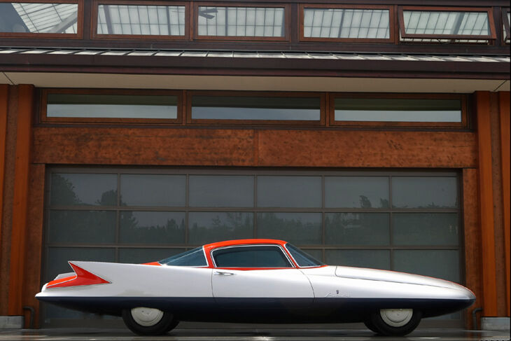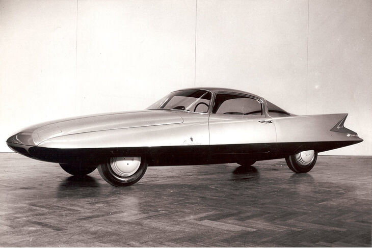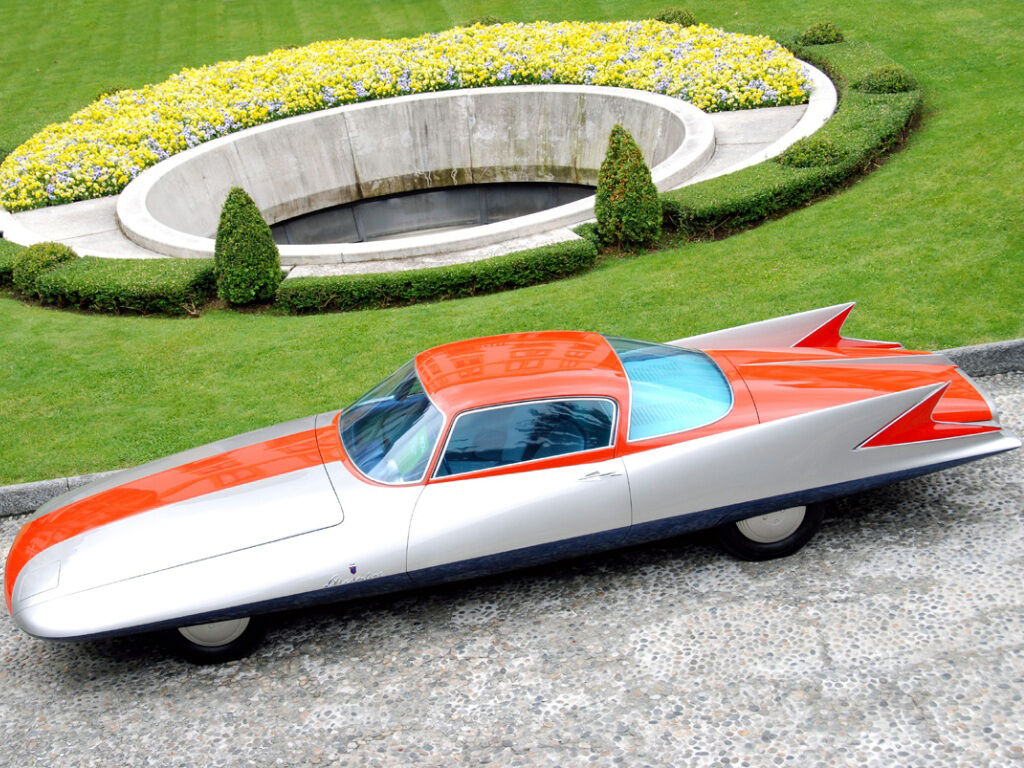 Eso mismo se hizo en el Ghia Streamline X, un trabajo del diseñador Giovanni Savonuzzi. Presentado en 1955 en el Salón de Turín, es un ejemplo clásico de diseño de aviones. Líneas suav con forma de ala recorren tosas las superficies en movimiento en ángulo o curvas. La línea X fue creada por el jefe de diseño de Chrysler, Virgil Exner, que deseaba explorar soluciones para la resistencia al viento cruzado y el agarre trasero, así como potencia de la turbina.