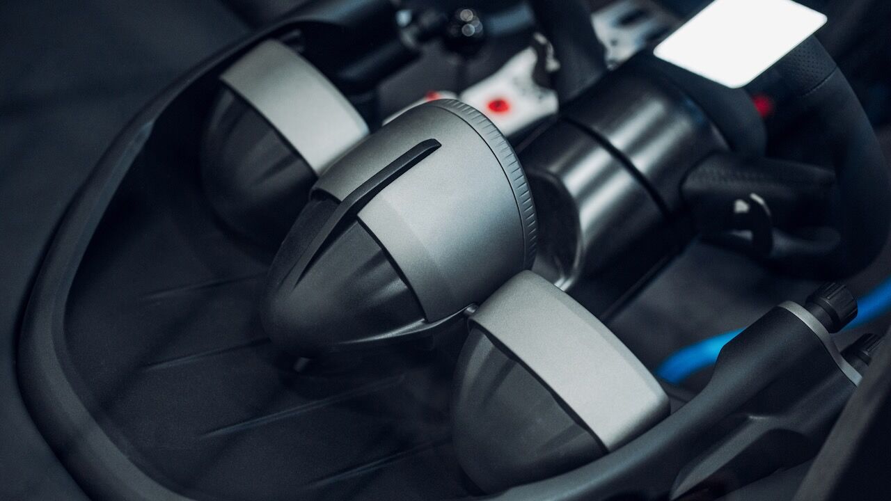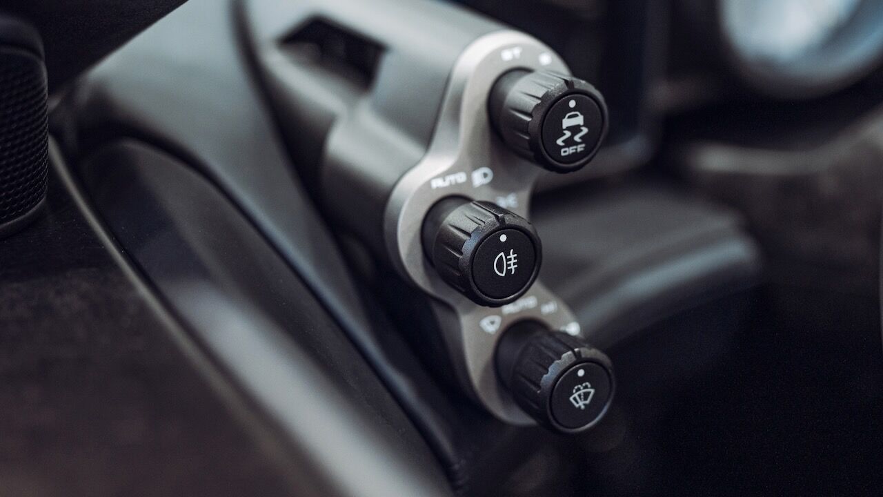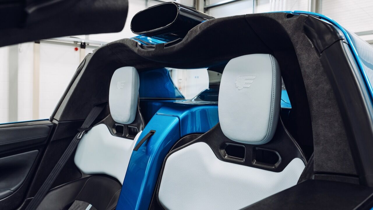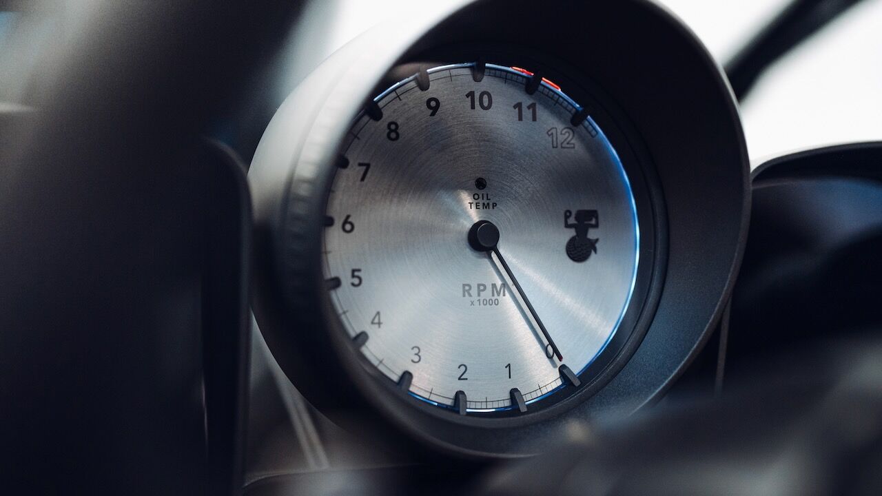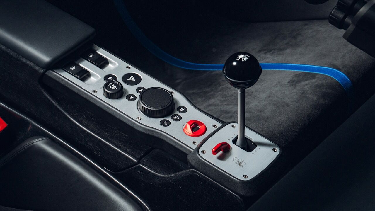 El interior del GMA T.33 Spider queda definido por su minimalismo y simplicidad. Todo gira alrededor del conductor, que tiene delante un cuentarrevoluciones analógico bien grande y que llega hasta las 11.100 rpm. A ambos lados tiene unas pantallaspara controlar el resto de funciones, incluido el infoentretenimiento. Este ejemplar también cuenta con una conectividad completa con Apple CarPlay y Android Auto. Sin embargo, todo es más analógico y sus elementos están hechos de fibra de carbono. De ese material son los asientos y el volante, mientras que los pedales o la palanca de cambios son de aluminio.