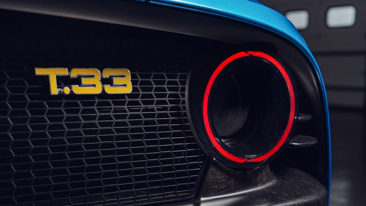 Se trata de un vehículo convertible gracias a dos paneles rígidos que se pueden quitar para disfrutar de la conducción a cielo descubierto. La parte positiva es que no han sido necesarios grandes adaptaciones sobre el chasis monocasco de fibra de carbono que ya utilizaba el T.33 coupé, así que se mantiene su sobresaliente rigidez torsional. Otra peculiaridad es que esas secciones del techo se pueden almacenar en dos compartimentos ocultos en las aletas traseras para no restar capacidad. En total, junto al maletero delantero, suman 295 litros para el equipaje.