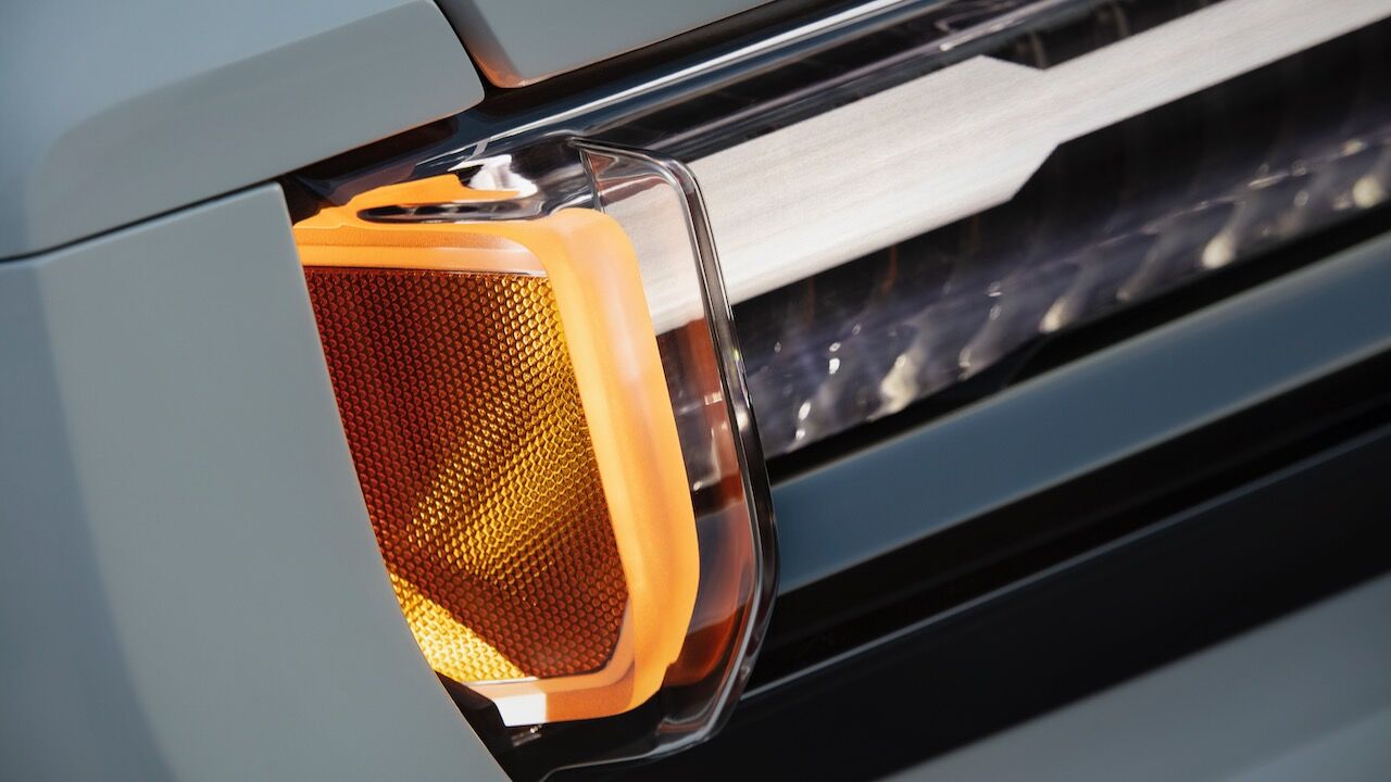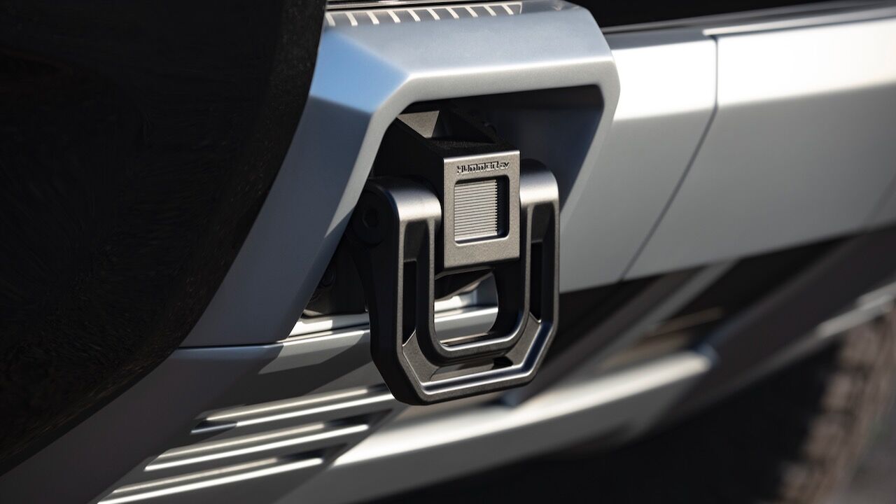 A nivel de diseño es exactamente lo que se esperaba de él. Se retoman las líneas características de los anteriores Hummer, con sus ángulos rectos y la robustez propia. Sin embargo, se aprecia la evolución en algunos puntos como el frontal, con esa parrilla iluminada que integra unos estrechos faros LED. Destacan también los pasos de rueda abultados y de formas cuadradas. Por no hablar de las protecciones por toda la carrocería que dejan clara su vocación todoterreno.