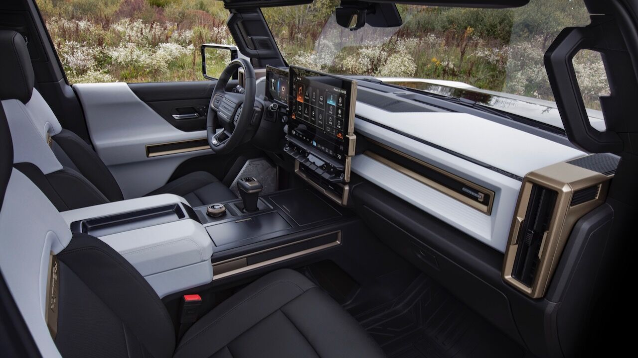 Aunque no solo es llamativo el gigantesco exterior de este GMC Hummer EV (son 5,5 metros de largo y algo más de 2 de alto). En el habitáculo también ha habido una actualización a nivel tecnológico, pues cuenta con una pantalla de 12,3 pulgadas para controlar el infoentretenimiento y otra de 13,4 pulgadas para la instrumentación. Destacar varias funciones en el ámbito de la conectividad y también el sistema UltraVision con hasta 18 vistas diferentes para que no haya problemas maniobrando con él.