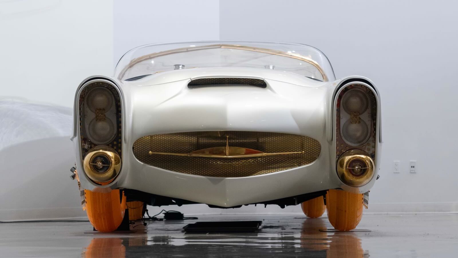El motor, un V8 Lincoln Y-block, garantizaba potencia, pero el verdadero espectáculo estaba en su estética: un perfil alargado, faros envolventes y un techo transparente que evocaba naves espaciales.
