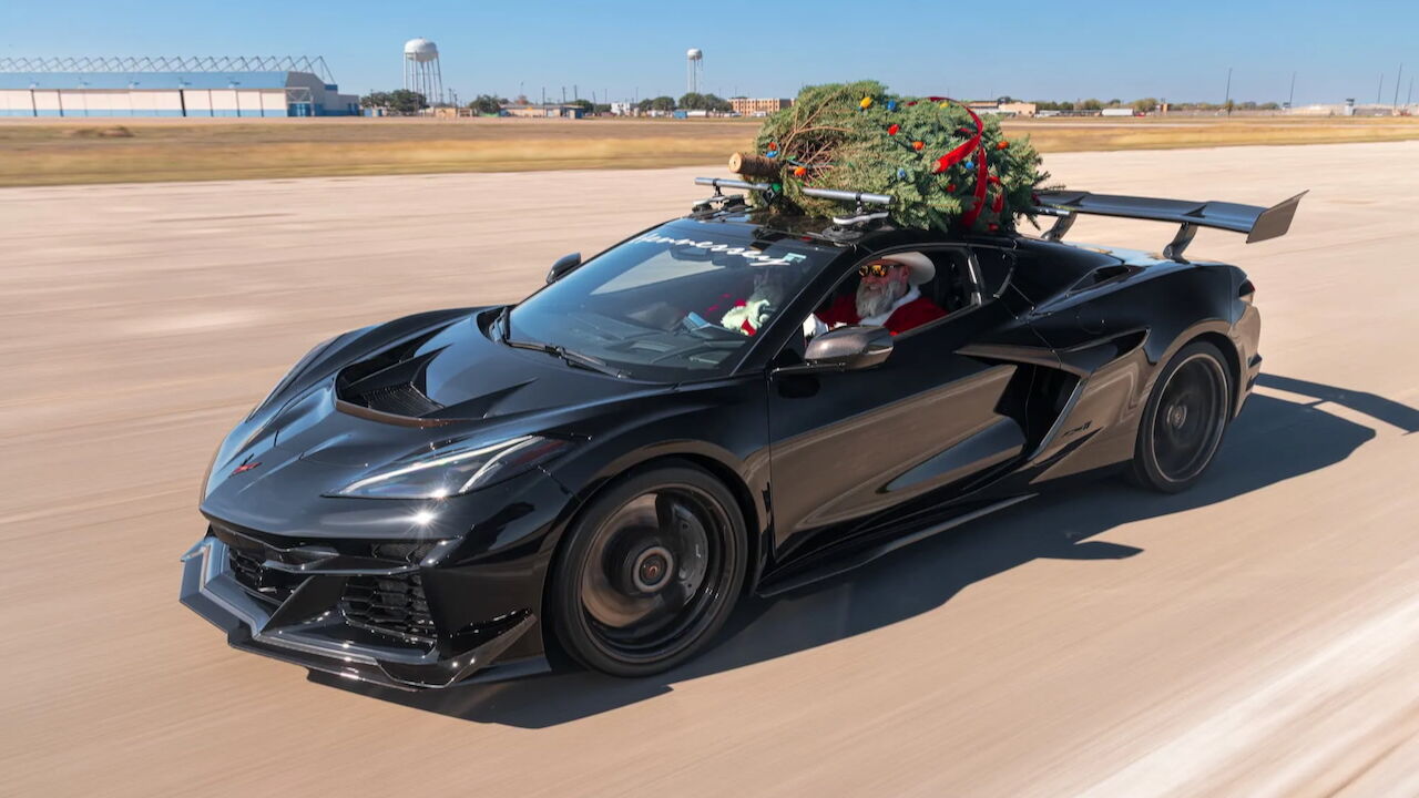 El protagonista de esta locura festiva ha sido el nuevo Chevrolet Corvette ZR1, una bestia equipada con un motor V8 biturbo de 5.5 litros que ha sido preparada para alcanzar los 1.064 CV de potencia. Eso sí, también se ha arruinado la aerodinámica de un superdeportivo instalando en el techo un árbol de 1,7 metros de altura, decorado con más de 200 luces y cintas festivas. A pesar de este freno natural, el piloto Spencer Geswein logró alcanzar unos impresionantes 315 km/h (196 mph) en la pista de Chase Field.