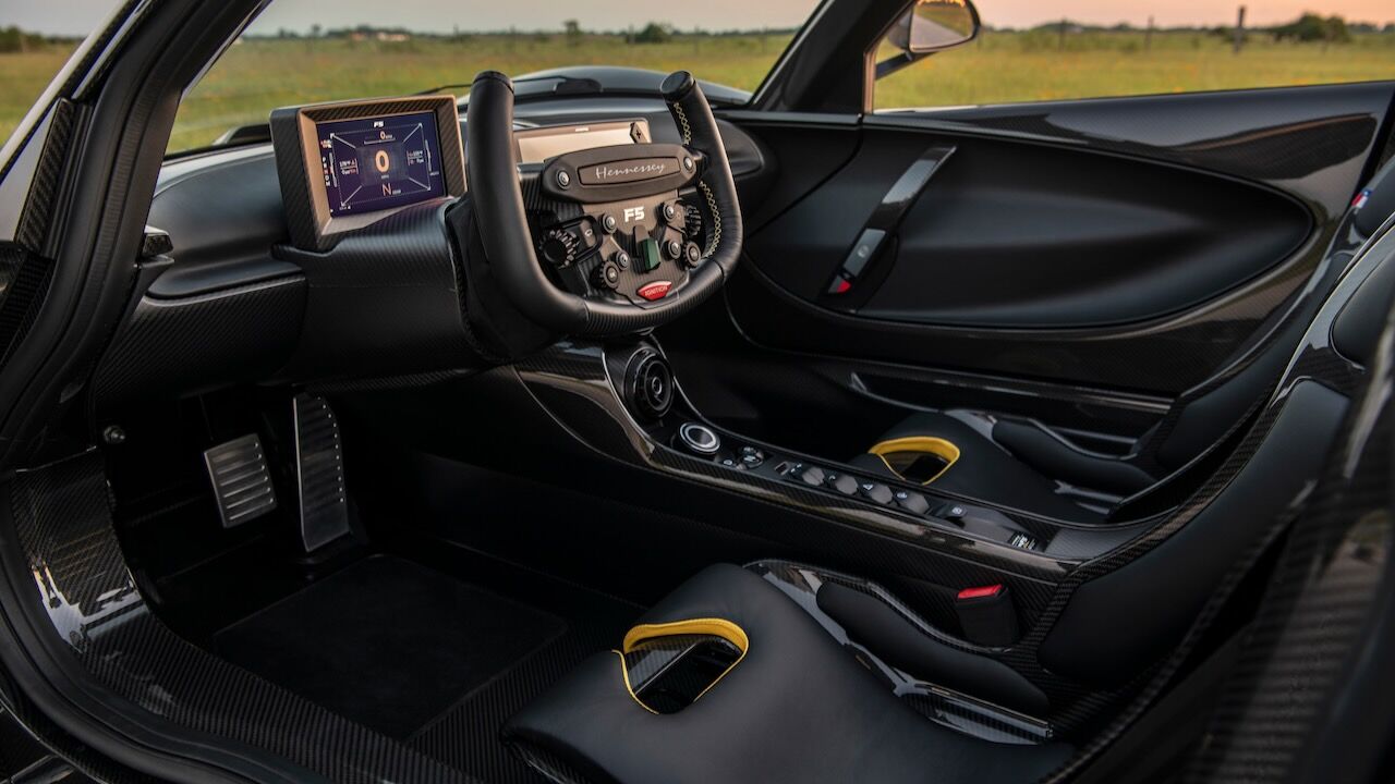 Es la versión descapotable del Venom F5 Revolution que vió la luz a principios de año y que estaba más centrado en el desempeño en circuito que en la velocidad punta. Lo que se ha hecho con este ejemplar es trabajar mucho en la aerodinámica. Se consigue una mayor carga gracias a añadidos como el splitter delantero o el difusor trasero más grandes, además de un alerón trasero muy destacado o una nueva toma de aire en el techo. Aunque la diferencia es que el Roadster tiene sustituye el techo rígido por un panel de carbono extraíble.