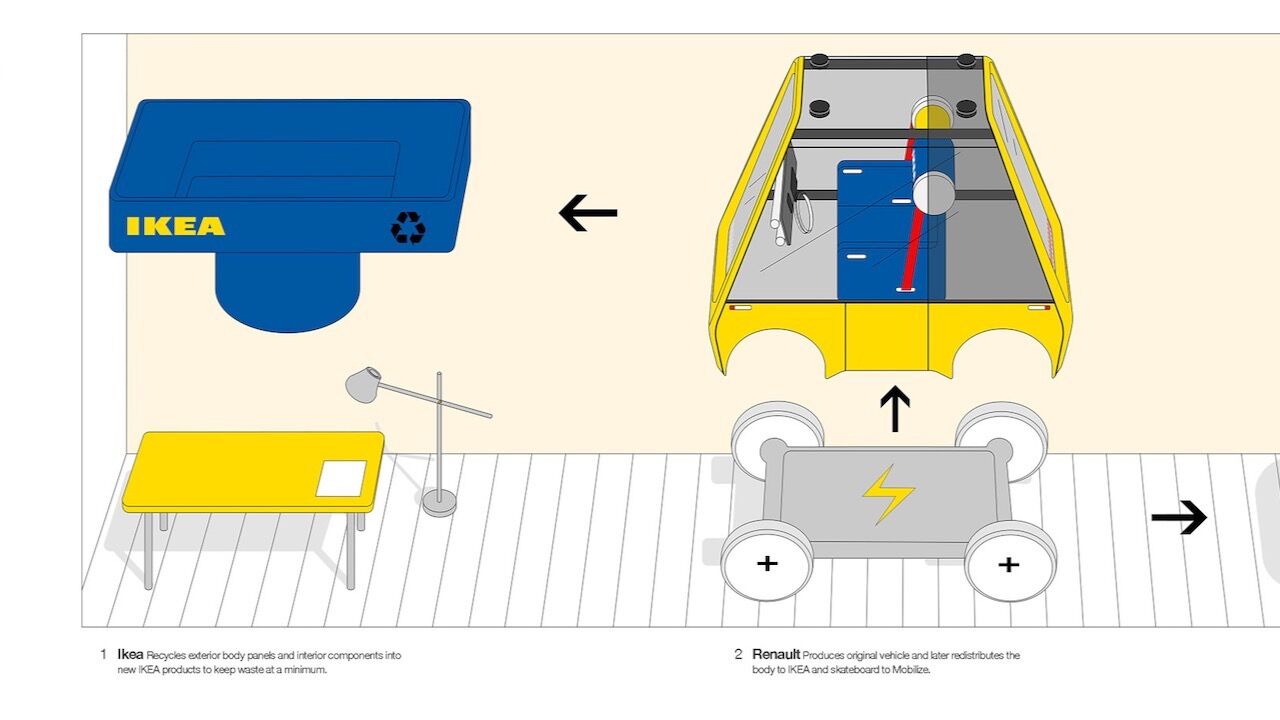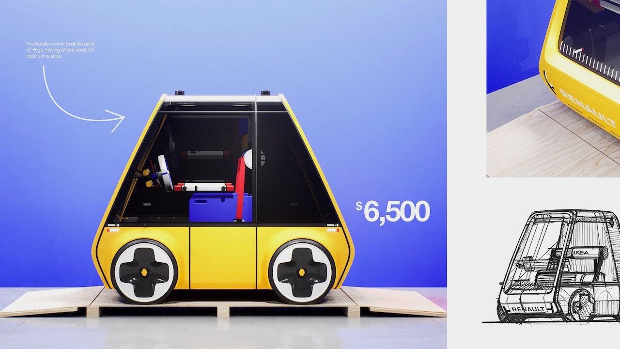 Hablamos en condicional porque ni el fabricante de coches francés ni la empresa sueca se han unido para hacer un coche. Este proyecto es obra de Ryan Schlotthauer, un estudiante de diseño del College for Creative Studies de Estados Unidos, en el que ha intentado plasmar su visión de la movilidad del futuro. Los usuarios podrían comprar el kit para montar su Höga en el Ikea. Se llevarían a casa una caja que tiene 374 piezas para montar el vehículo, aunque algunas vendrían ensambladas por parte de Renault para que el comprador solo tuviera que armar 114 piezas.