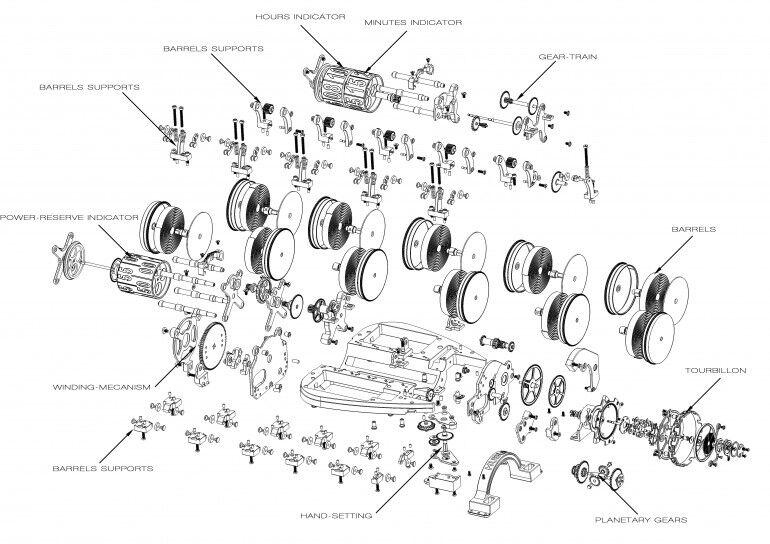 Ahora, unos meses después de conocer al sucesor del Ferrari enzo llega este reloj diseñado para que coincida con la apariencia del LaFerrari. El Hublot MP-05 LaFerrari se ha desarrollado por completo en paralelo al vehículo, desde el punto de vista técnico y del diseño, y junto a los equipos de Ferrari. Entre ellos podemos encontrar muchos puntos en común. Con unos 640 componentes en el caso del movimiento, que incluye, además, un Tourbillon, y una reserva de marcha de alrededor de 50 días (récord mundial para un reloj tourbillon) gracias a sus 11 barriletes dispuestos en línea, a modo de auténtica columna vertebral, e interconectados de forma que no se descarguen unos a continuación de otros, sino que sean solidarios unos respecto a otros.