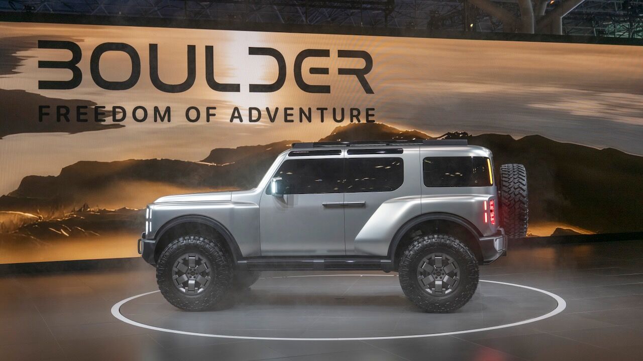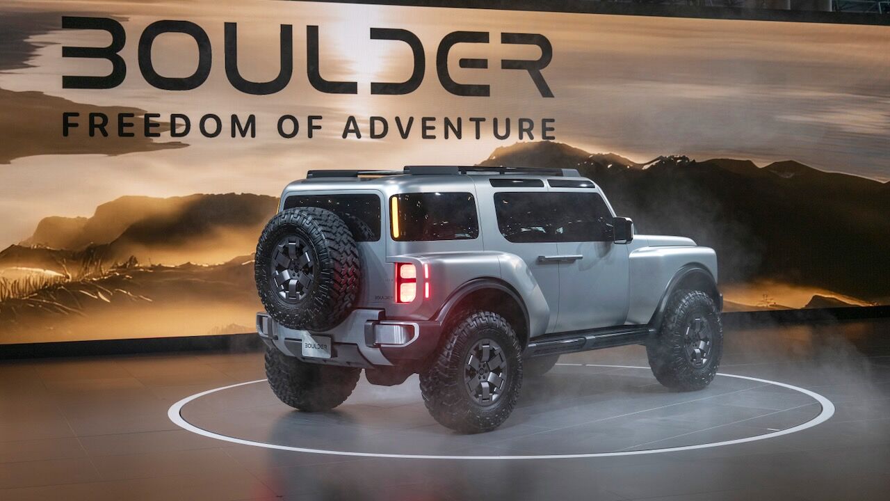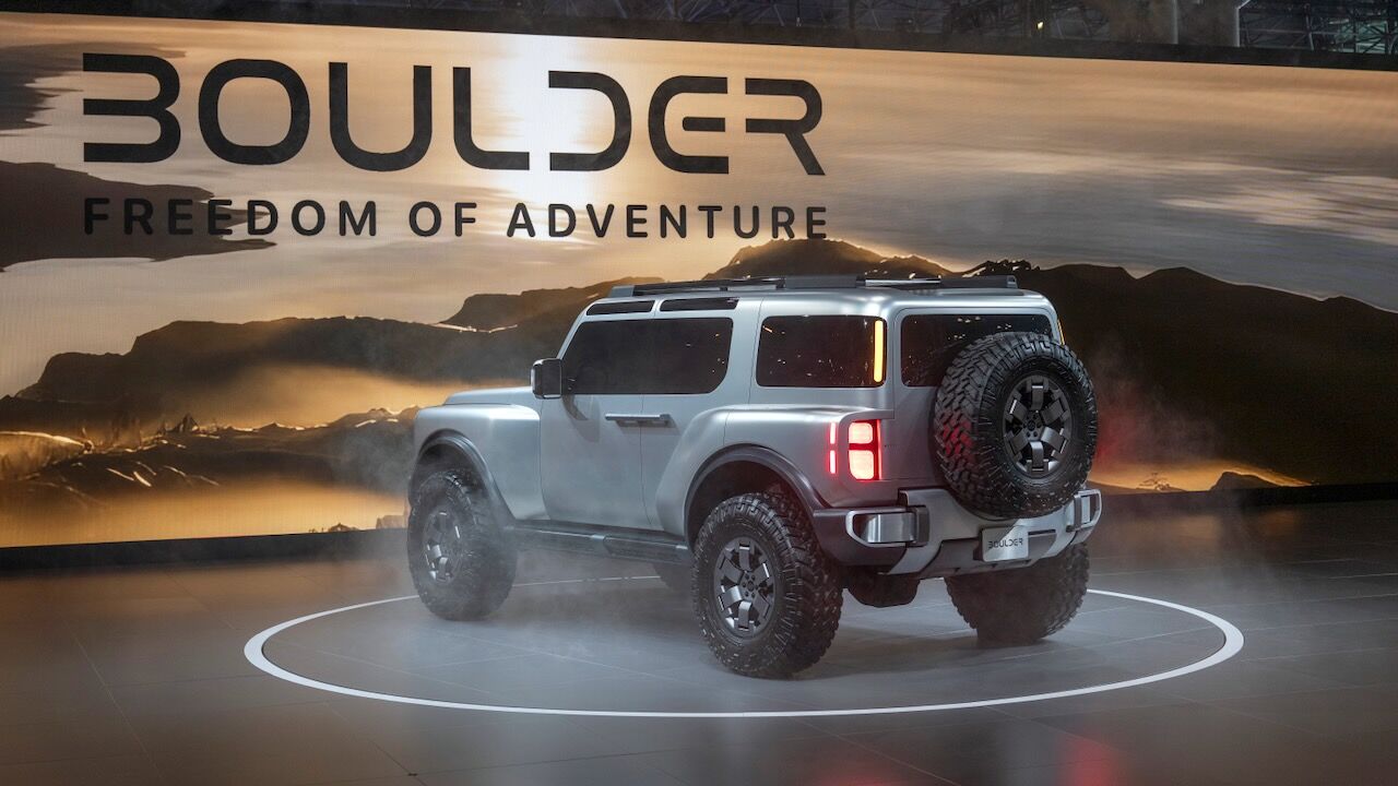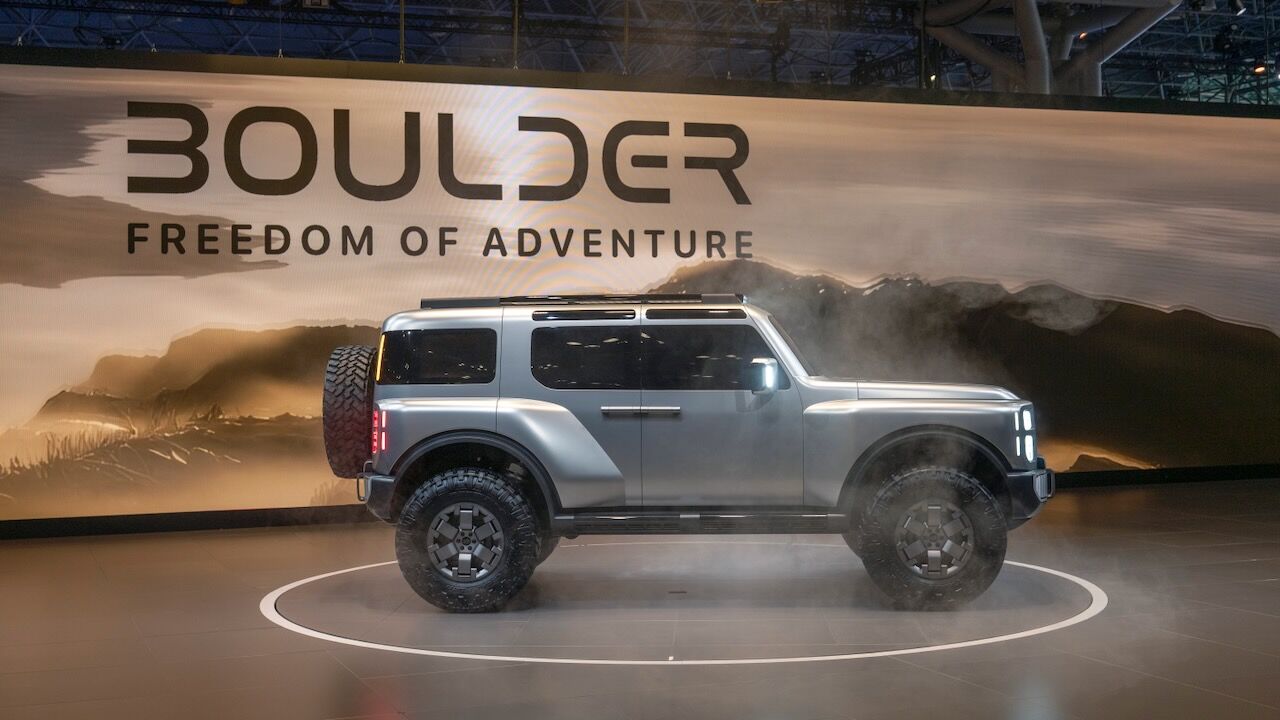 El Hyundai Boulder Concept tiene una estética que impone respeto desde el primer vistazo. Se trata de un mastodonte de dos volúmenes que bebe del lenguaje de diseño «Art of Steel» de la marca. Eso se traduce en formas marcadas y ciertos aires atemporales, con detalles imperdibles como el acabado Liquid Titanium de su carrocería. No faltan detalles como los ganchos de remolque incorporan materiales reflectantes para localizar el vehículo fácilmente. Tampoco unas ventanas superiores de estilo safari o un portaequipajes rematado con una malla de acero.