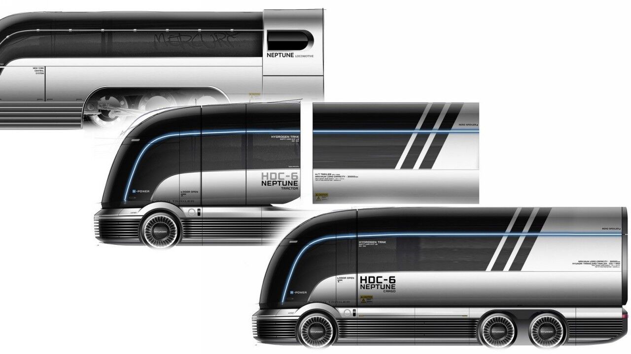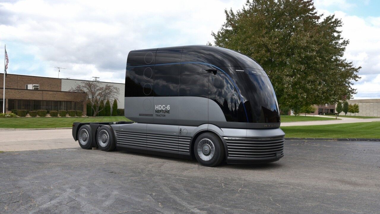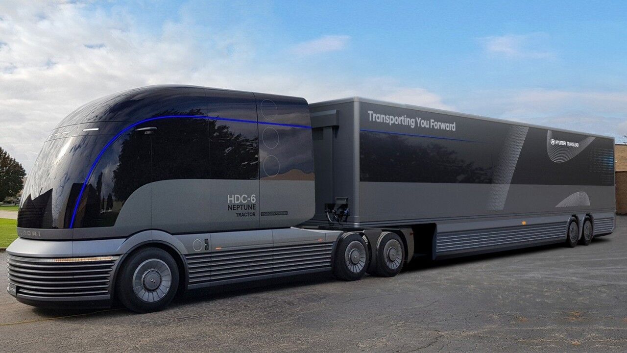 El Hyundai HDC-6 Neptune Concept anticipa un posible futuro de los camiones comerciales movidos por celdas de combustible de hidrógeno. A pesar de ser un prototipo, Hyundai dice que miró al pasado en busca inspiración para su diseño, específicamente en la década de los 30, donde destacaban las líneas aerodinámicas inspiradas por el movimiento Art Déco.