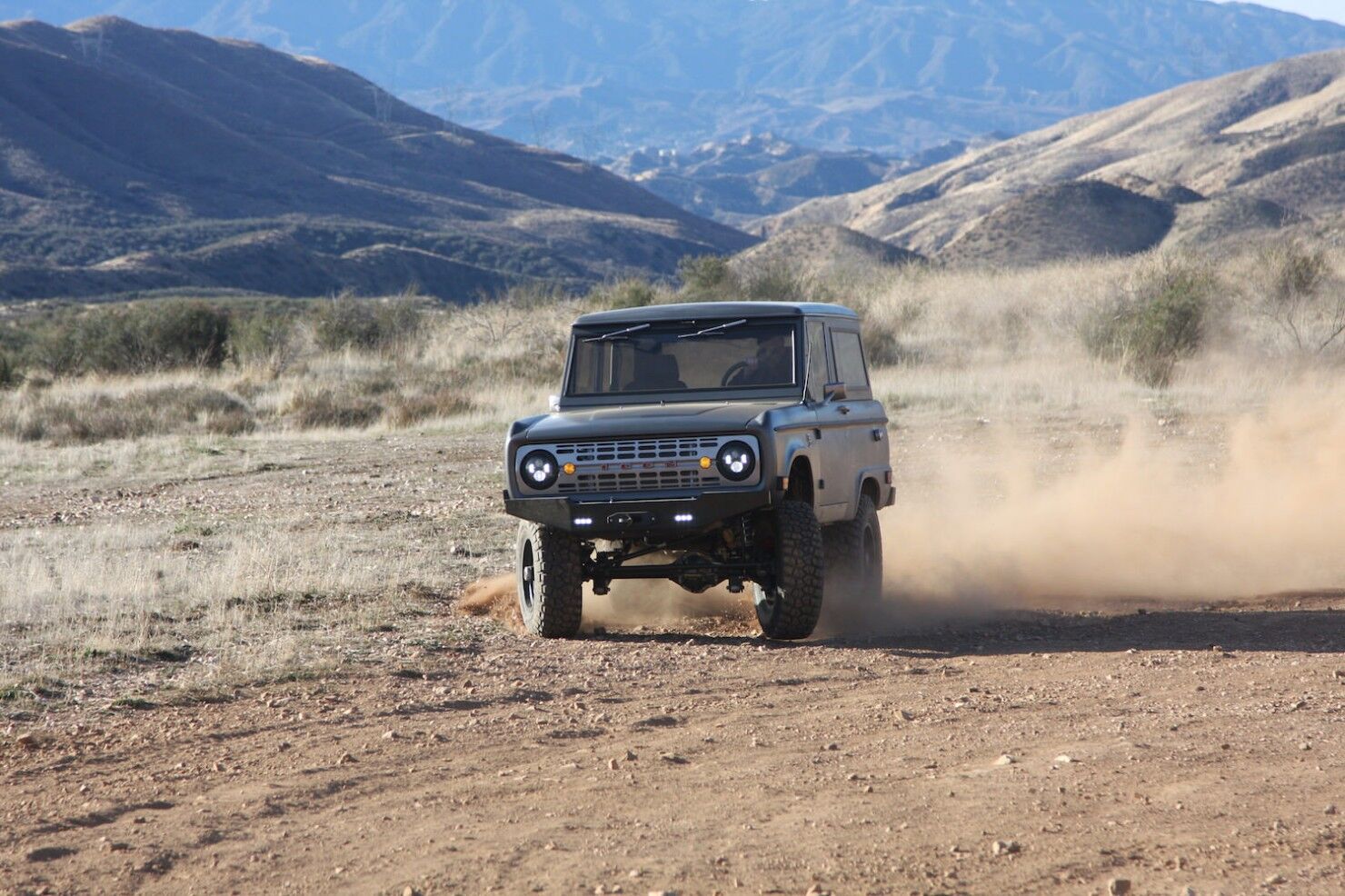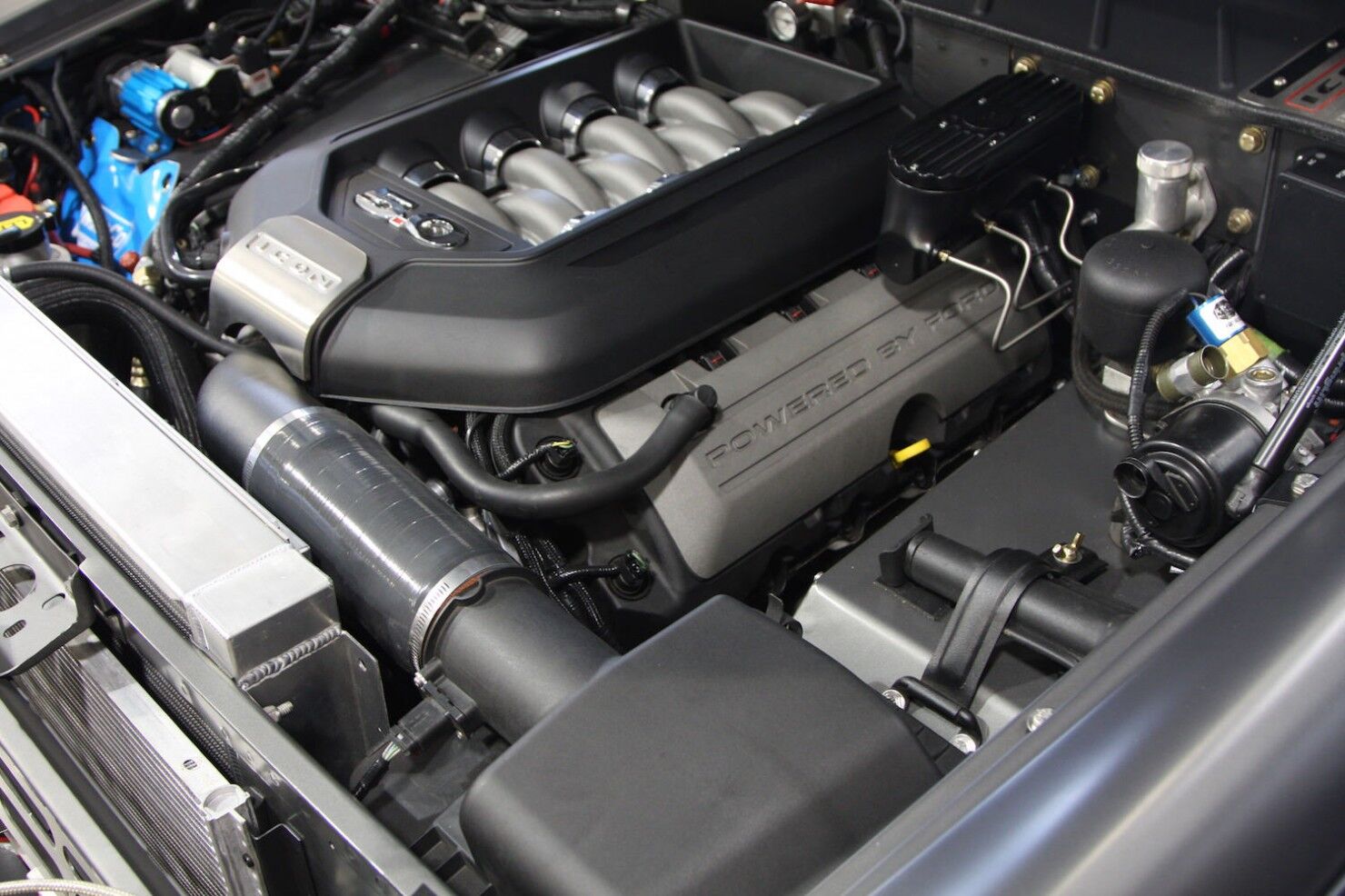 El motor que anima este 4×4 es el «Coyote» un V8 de cinco litros original de Ford que es el que montan el Mustang GT o el F-150 y que rinde 412 CV de potencia y 528 Nm de par. Va acoplado a una caja de cambios manual de origen Aisin-Warner con cinco velocidades, aunque también se puede equipar una automática de cuatro, suministrada por Ford. Puede potenciar la capacidad de tracción de este Bronco, con bloqueos de diferencial de ARB.