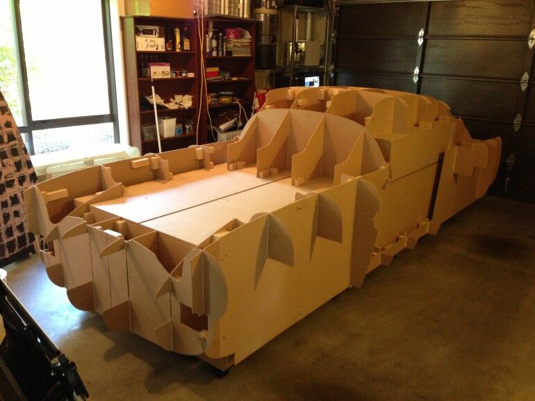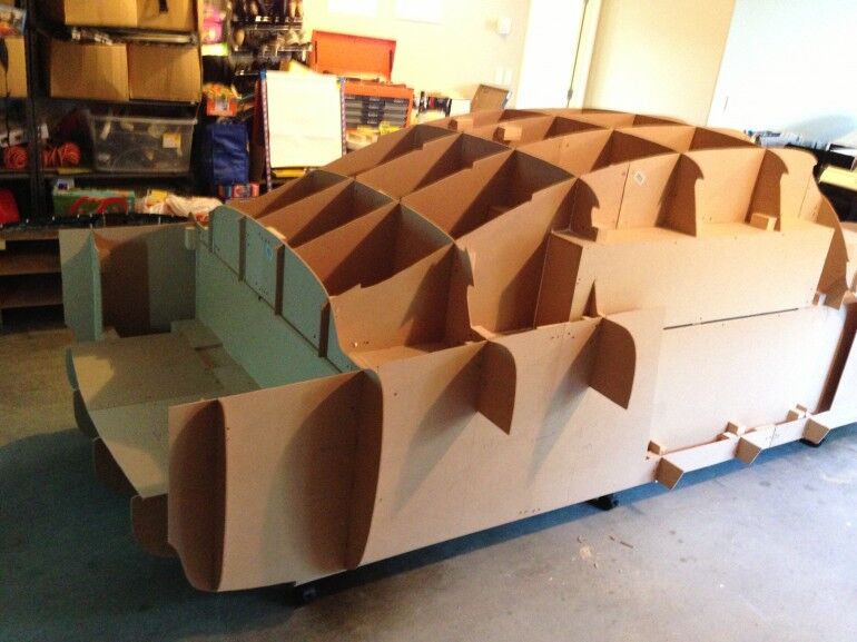 Como la impresora no puede dar salida a piezas grandes, como las defensas o las puertas, Sentch crear estas secciones mediante cientos de formas más pequeñas, de unos 105 x 105 mm, que luego monta y pega en su lugar.