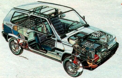 El Panda Elettra, cuya producción en serie comenzó en 1990, fue equipado con un motor de corriente continua y una batería de ácidos de plomo capaz de garantizar autonomía de 70 km en el ciclo urbano y una velocidad máxima de 75 km/h.