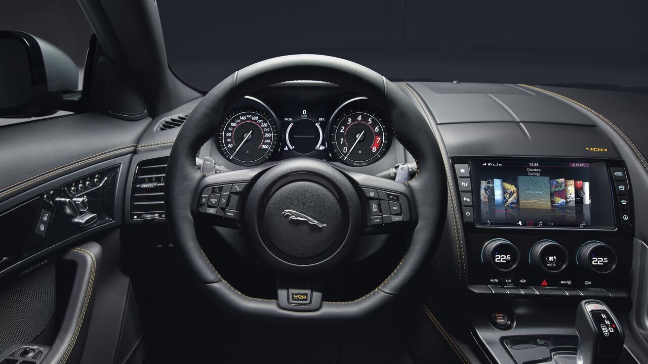 Disponible con las dos carrocerías del modelo, asociado a un cambio automático ZF de convertidor de par con 8 relaciones fabricado denominado Quickshift. Hay posibilidad de elegirlo con de propulsión o tracción total AWD, se trata de la versión que se sitúa justo por debajo de los motores V8, que ofrecen 550 CV y 575 CV en el caso del F-Type SVR.