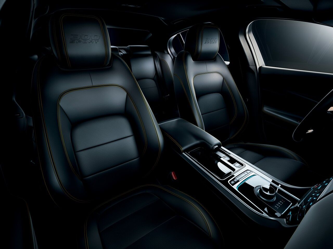 Los 300 Sport lucen el color Dark Satin Grey en zonas como el marco de la parrilla, los retrovisores o el alerón trasero. El distintivo que da nombre a la edición especial estará tanto en el frontal como en la zaga. Las llantas de 19 o 20 pulgadas también son específicas y vienen con unas pinzas de freno pintadas. Se podrá escoger con tres colores distintos para la carrocería: Yulong White, Indus Silver y Santorini Black, y en el XE también está el Caldera Red.