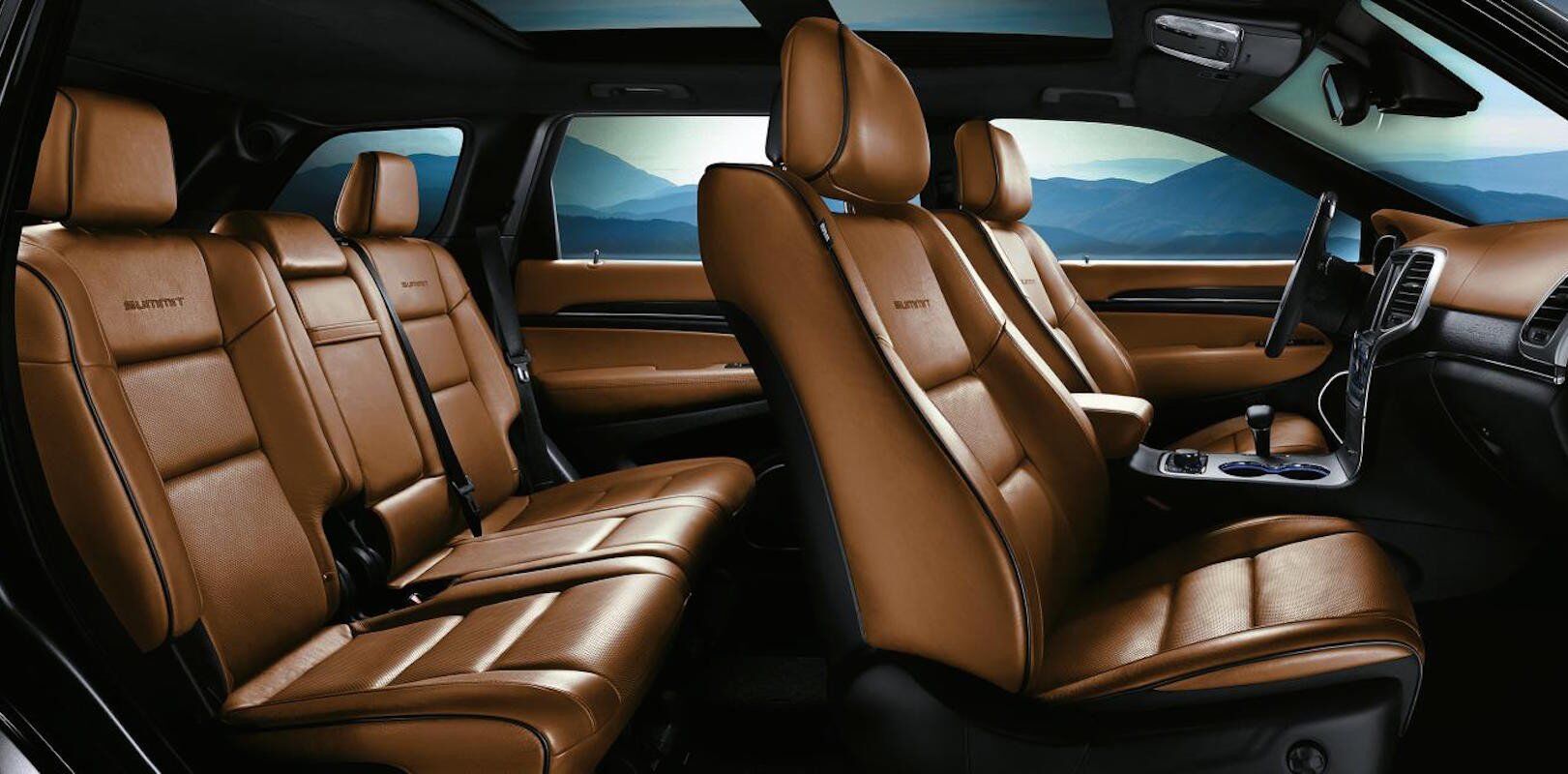 En el interior del Jeep Grand Cherokee Summit Platinum destacan los asientos de cuero color marrón, exclusivos de esta edición especial y el Sistema de entretenimiento DVD BluRay con doble pantalla trasera, situadas en los respaldos de los asientos delanteros.