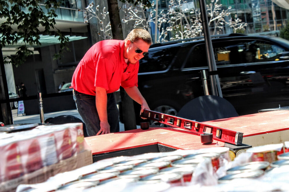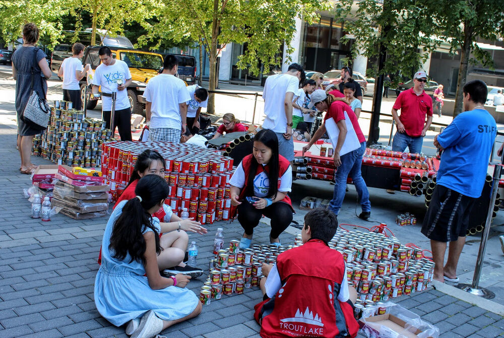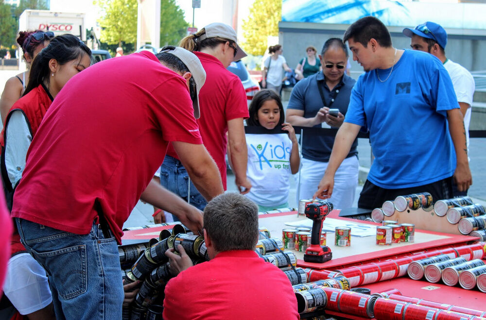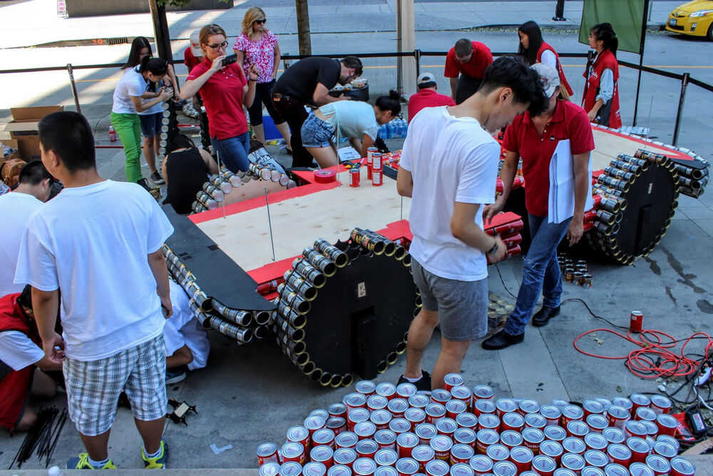 Fue un trabajo duro, ya que un grupo de adolescentes de la organización, de entre 12 y 18 años, precisó de 12 horas para construirlo. Después de ser exhibido durante los festejos en Vancouver, fue desmantelado para proporcionar 3.120 comidas a través del Banco de Alimentos de la ciudad.