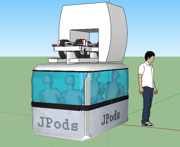 Otra idea que intenta solucionar a los atascos. Se trata de un diseño conceptual creado por Bill James que usa una especie de rieles que serían colocados en áreas urbanas de alto tráfico. Los JPods, que son una especie de cabinas, se alimentarían usando energía solar. Una vez dentro del JPod, el usuario selecciona el lugar al que quiere dirigirse en una pantalla táctil y un sistema del ordenador del vehículo, por supuesto conectado a Internet, determinará la ruta más óptima, sin más participación por parte del pasajero.