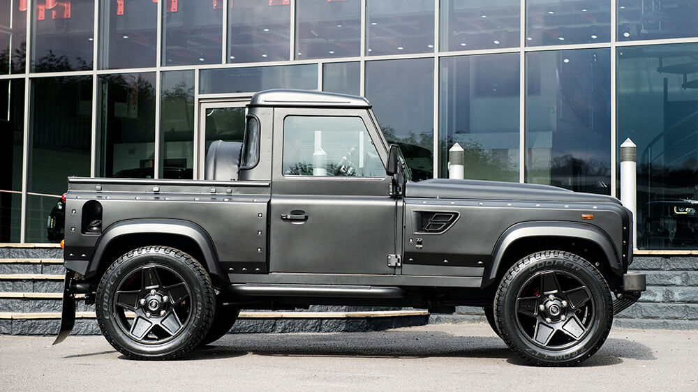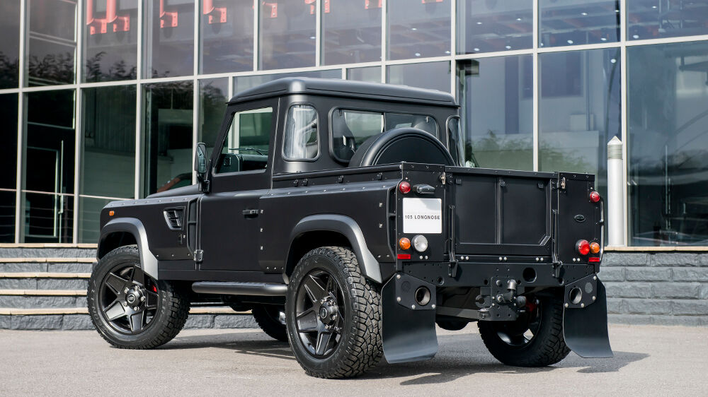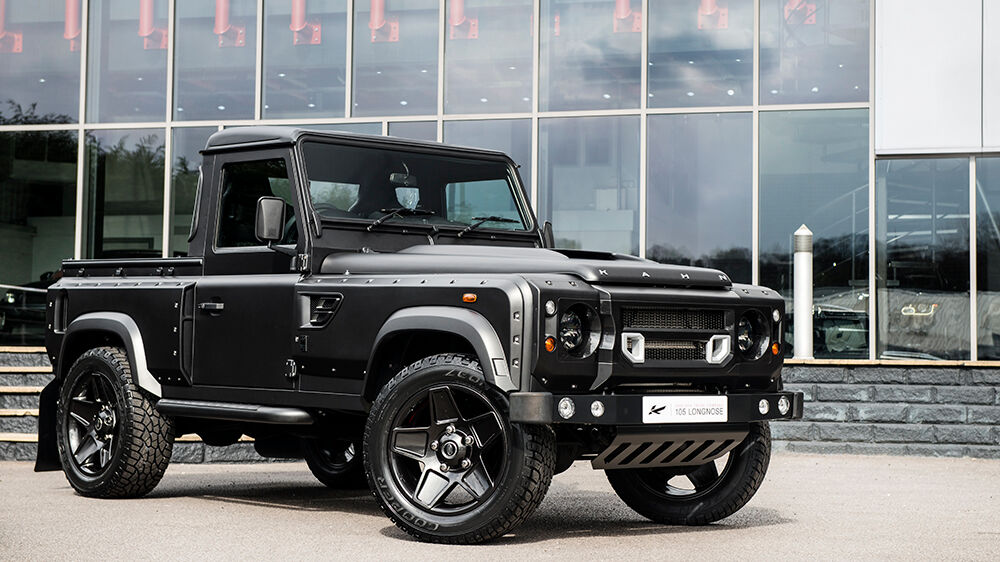 Para ampliar sus dimensiones, Kahn Design ha incorporado un nuevo kit de carrocería que incluye un parachoques delantero además de nuevos faros, una parrilla frontal X-Lander y un juego de llantas Defend 1945 Retro. También se ha cuidado mucho el interior que lleva un acabado de cuero y equipamiento exclusivo. Esta edición del Land Rover Defender presume de estética gracias a una mano de pintura negra metalizada que se ajusta a la perfección con el diseño planteado por Kahn Design. La firma británica vende este pick up Defender 105 por unos 80.000 euros.