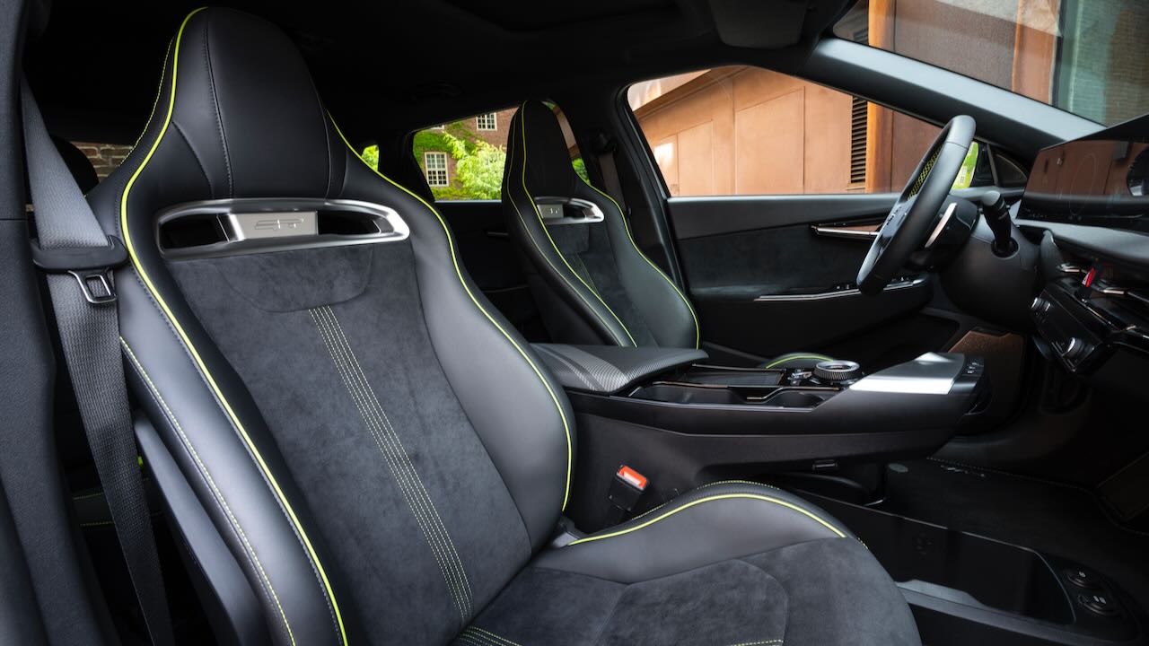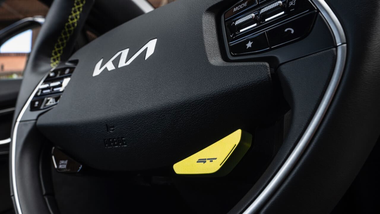 Los ingenieros de Kia han reforzando los aros de los rodamientos, cambiado la disposición de los imanes permanentes y optimizando la disposición del núcleo del rotor. Y en el chasis, el nuevo Kia EV6 GT cuenta con una suspensión específica (trasera de cinco brazos y delantera de dos), nuevos muelles que bajan 5 mm el coche, barra estabilizadora más rígida o una dirección con desmultiplicación variable, más directa, con 2,3 vueltas entre topes, que reduce progresivamente al aumentar la velocidad.