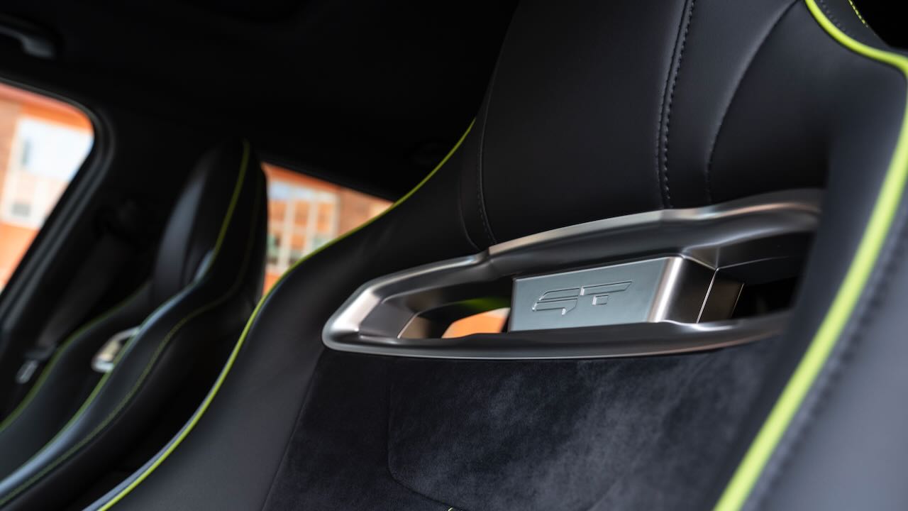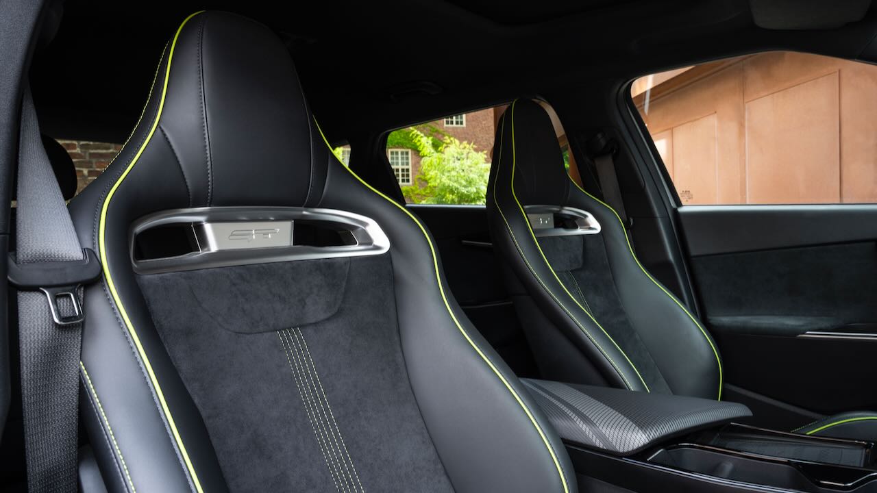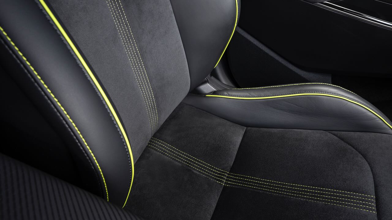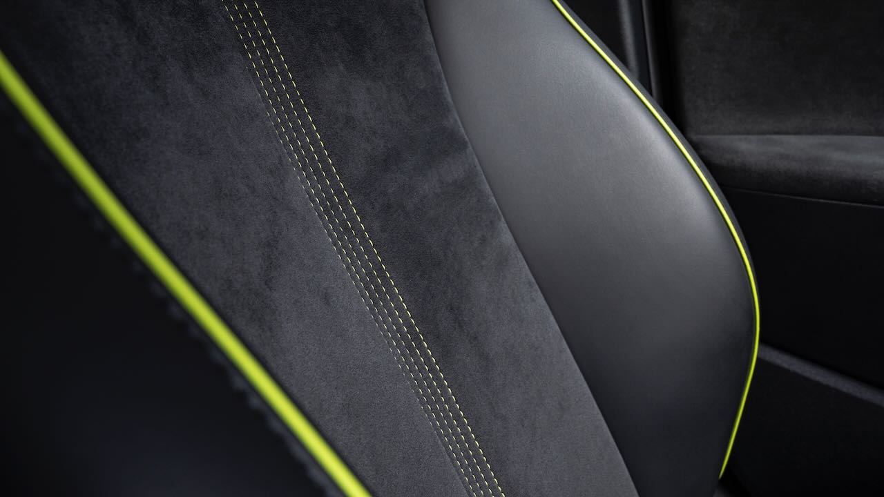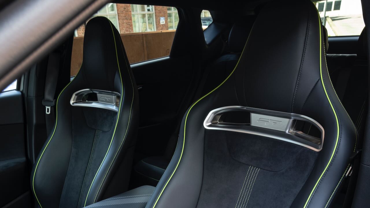 En el habitaculo lo más lllamativo son sin duda los asientos deportivos, tapizados con gamuza, así como las inserciones metálicas con el distintivo «GT» y los ribetes en verde neón. No faltan las dos