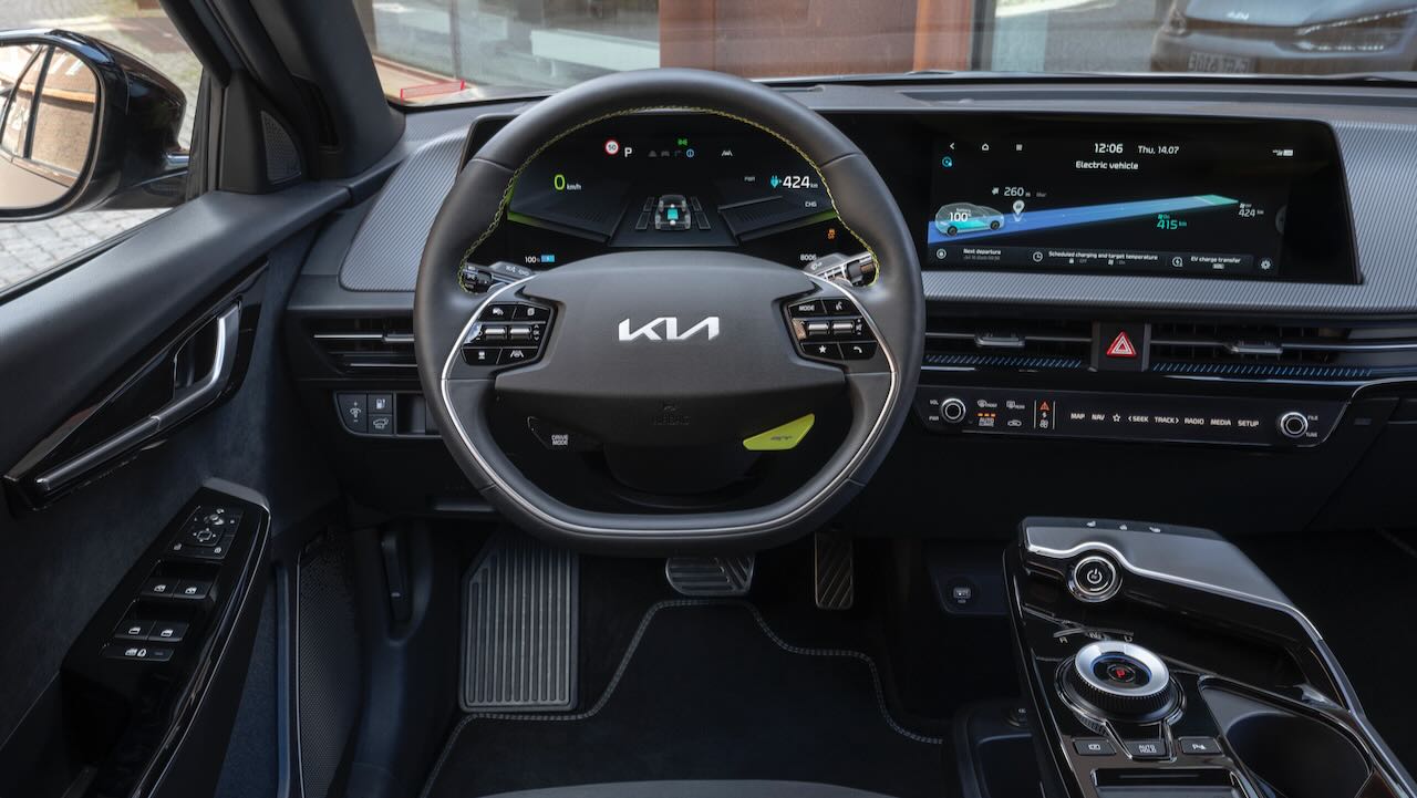 Gracias a la plataforma E-GMP la distribución de peso entre los ejes es muy neutra, con un 49:51%. Como las baterías se ubican bajo el piso, el centro de gravedad es muy bajo. El paquete de baterías tiene 77,4 kWh de capacidad, con el que homologa 424 km de autonomía. Gracias a su red eléctrica de 800 voltios, ademite cargas ultrarápidas y puede pasar del 10 al 80% de carga en solo 18 minutos. Se permite también la carga vehículo a dispositivo (V2D),para que el EV6 sirva de fuente de energía.